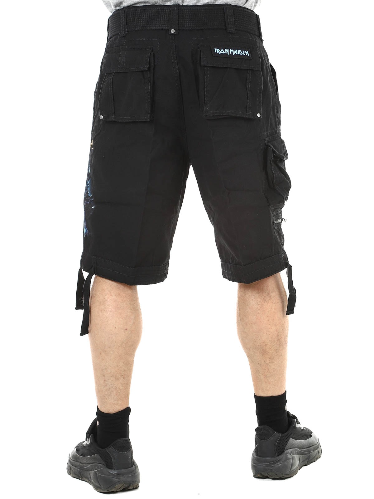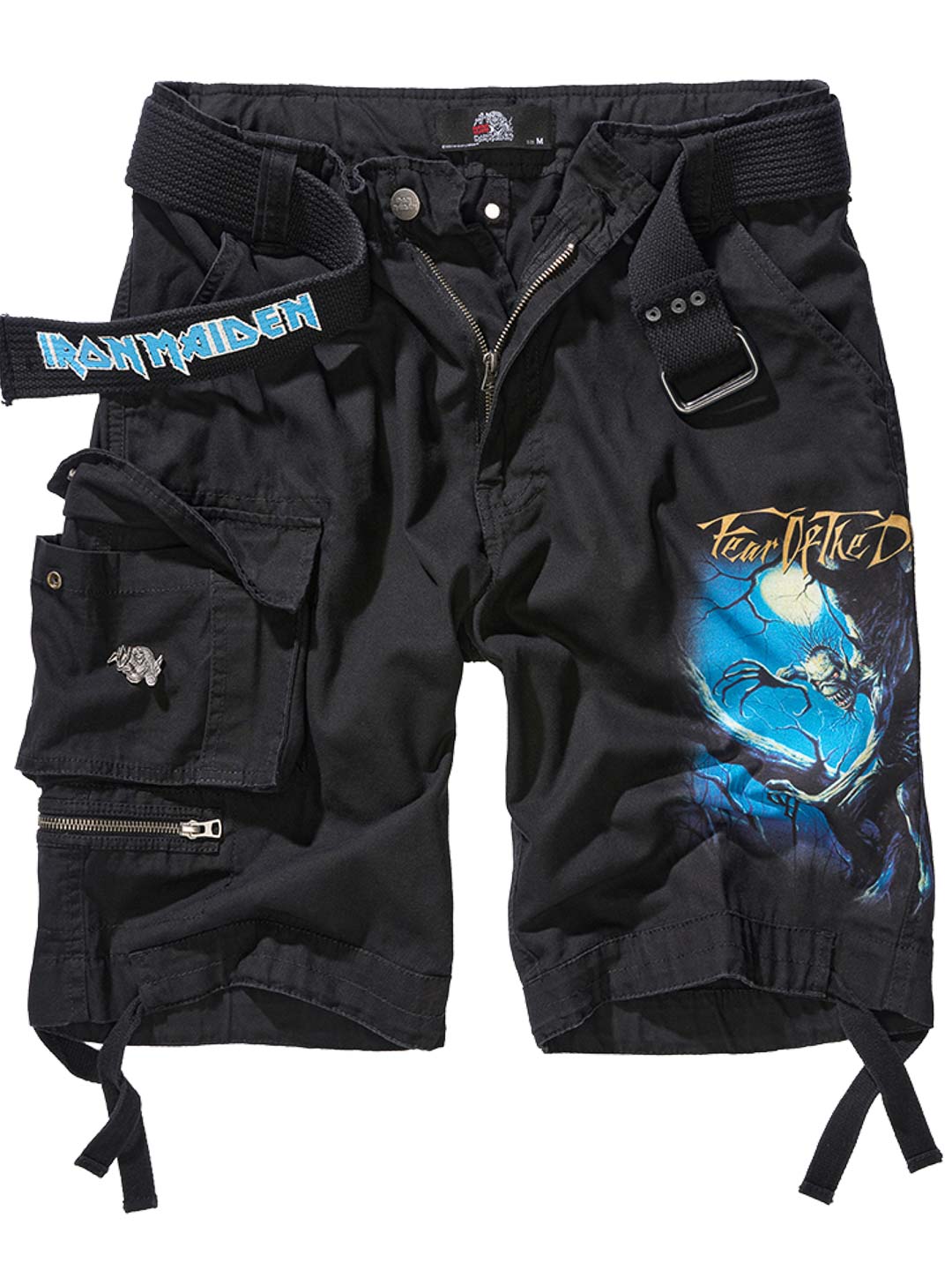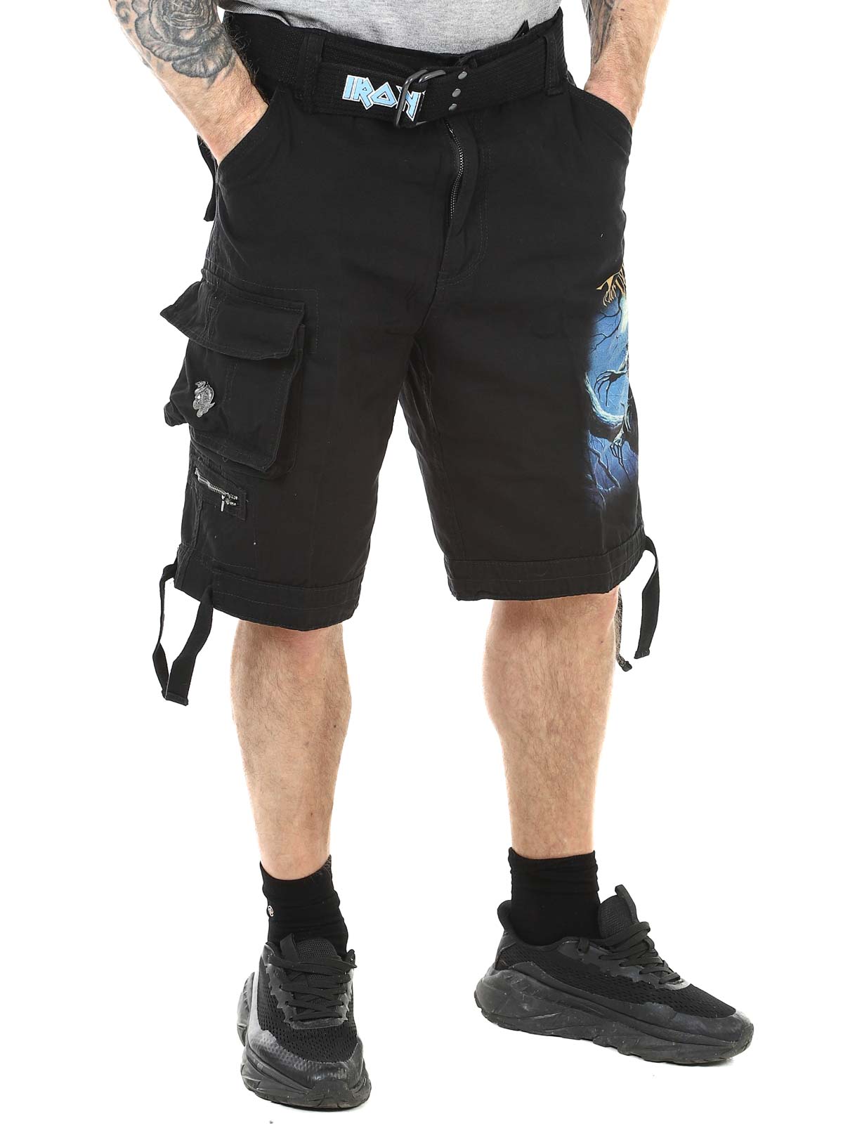 Wytrzymałe szorty cargo dla fanów Iron Maiden i klasycznego stylu rockowego. Szorty łączą solidny, inspirowany stylem militarnym design z kultowymi detalami z albumu Fear of the Dark. Wyposażone są w kilka praktycznych kieszeni oraz regulowane paski materiałowe w pasie i przy nogawkach, co ułatwia dopasowanie kroju dla optymalnego komfortu.
