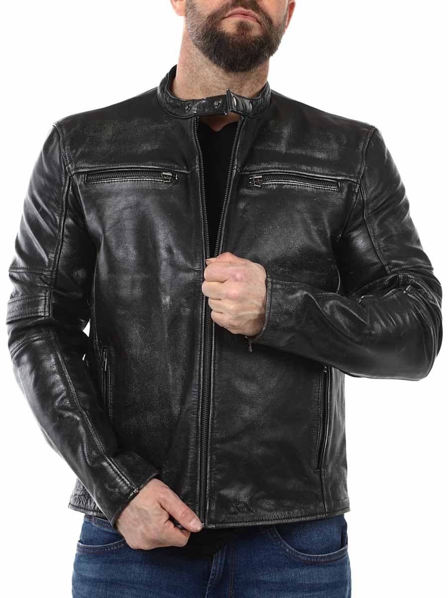 Stylowa kurtka z wysokiej jakości skóry w stylu vintage. Posiada regulowane mankiety, cztery zamykane kieszenie z przodu i dwie kieszenie wewnętrzne. Kurtka zapinana jest na zamek błyskawiczny i ma zapięcie na guziki przy kołnierzu. Wysokiej jakości kurtka dostępna tylko w Rockdenim!