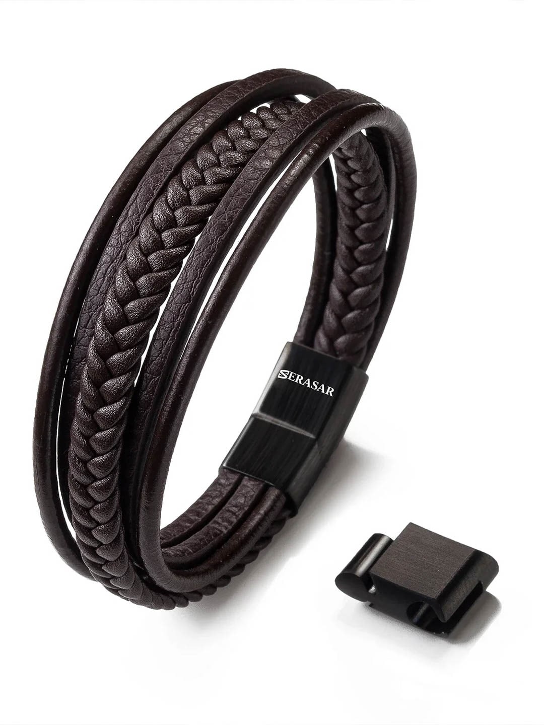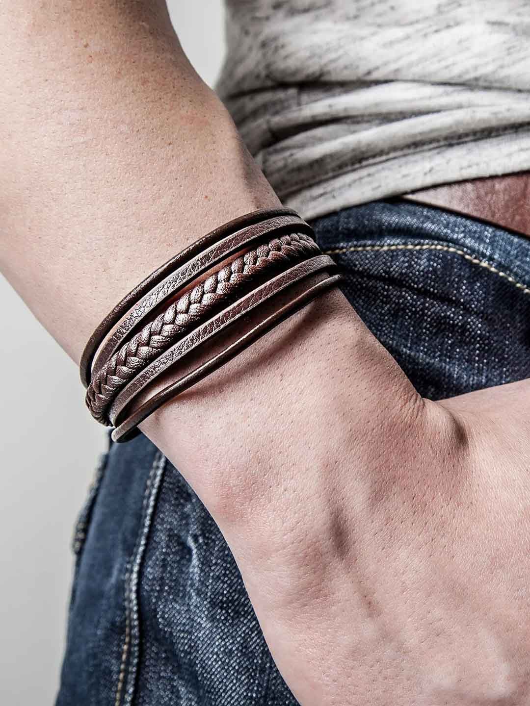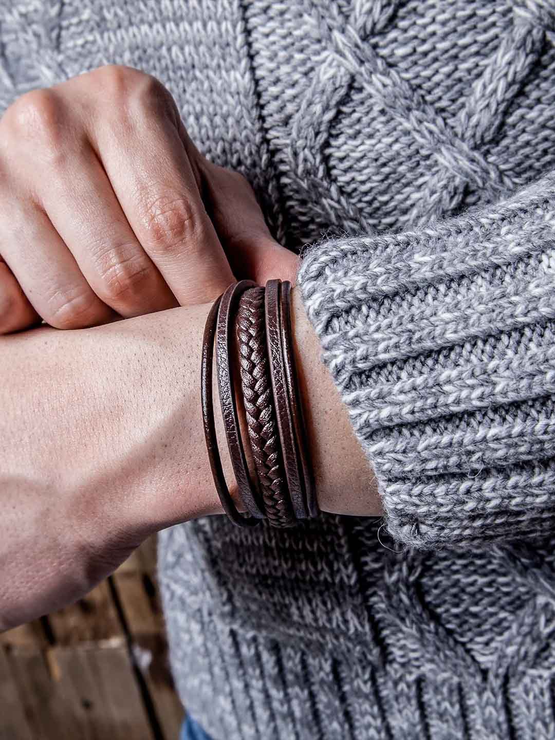 Stylowa bransoletka z naturalnej, plecionej skóry, która nadaje nowoczesny charakter. Polerowane magnetyczne zapięcie ze stali nierdzewnej ułatwia zakładanie i zdejmowanie, jednocześnie trzymając bransoletkę stabilnie przez cały dzień. Dołączona przedłużka umożliwia regulację długości – idealne rozwiązanie, jeśli chcesz trochę więcej luzu lub nie jesteś pewien rozmiaru. Ponadczasowy dodatek pasujący do każdej stylizacji.
