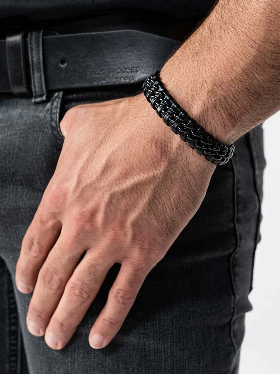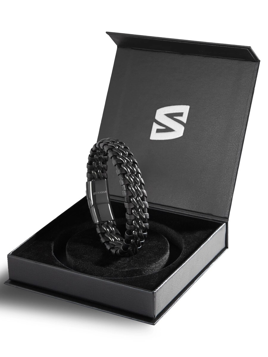 Stylowa bransoletka wykonana z plecionej kombinacji naturalnej skóry i stali nierdzewnej. Polerowane magnetyczne zapięcie ułatwia zakładanie i zdejmowanie, jednocześnie zapewniając pewne trzymanie przez cały dzień. Dołączona przedłużka pozwala regulować długość – idealna, jeśli chcesz trochę więcej przestrzeni lub nie znasz dokładnego rozmiaru. Ponadczasowy dodatek pasujący do każdej stylizacji.