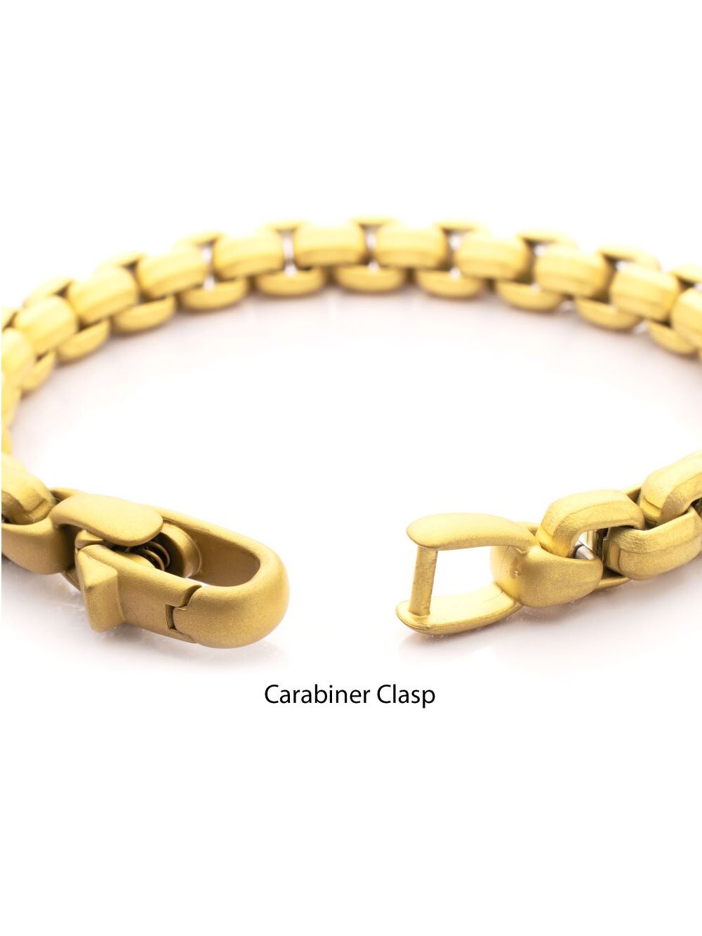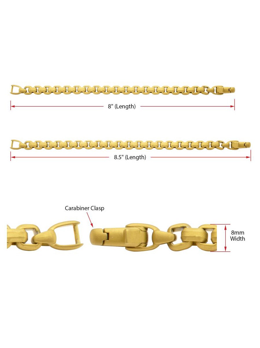 Męska Bransoletka 8 mm – Matowa Stal Nierdzewna z Powłoką Złota 18K IP i Zapięciem Karabińczykowym
