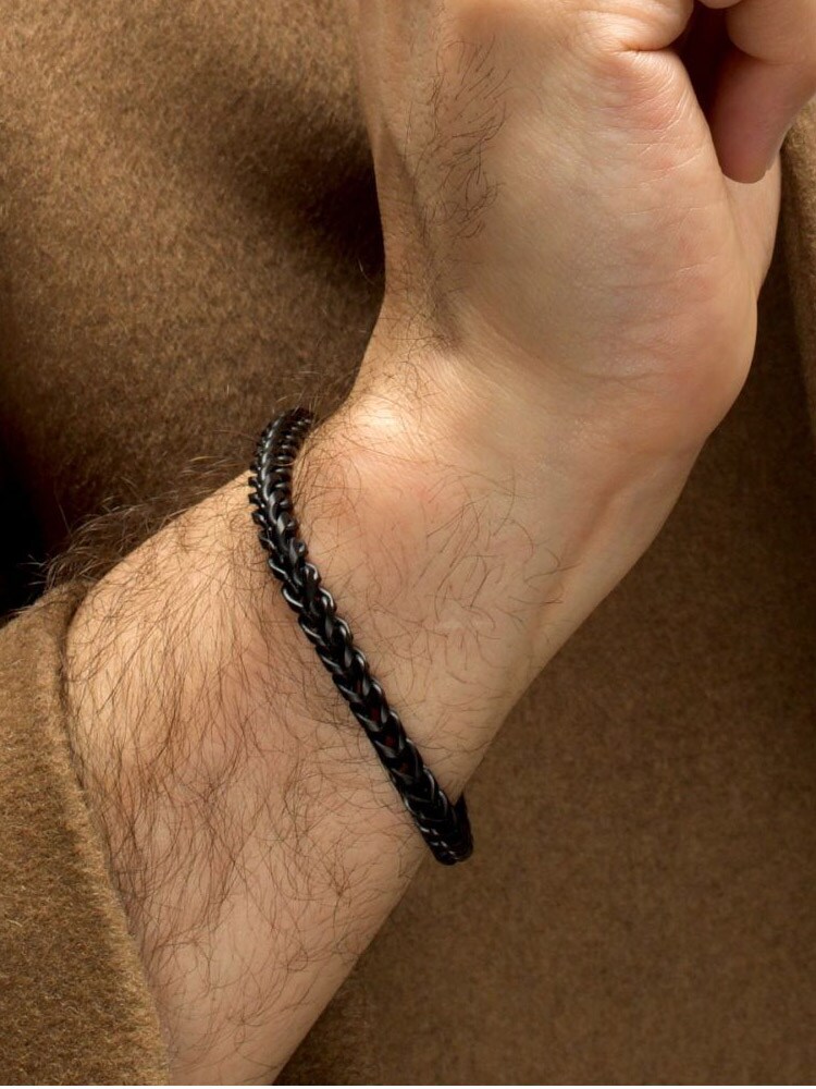 Męska Bransoletka Franco 5 mm – Czarna Stal IP z Matowym Wykończeniem i Karabińczykiem. MillGrade to seria biżuterii zaprojektowanej z myślą o trwałości – jak narzędzia z warsztatu, a nie ozdoby z witryny. Bransoletka, która wygląda mocno i taka właśnie jest.