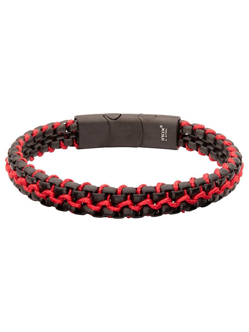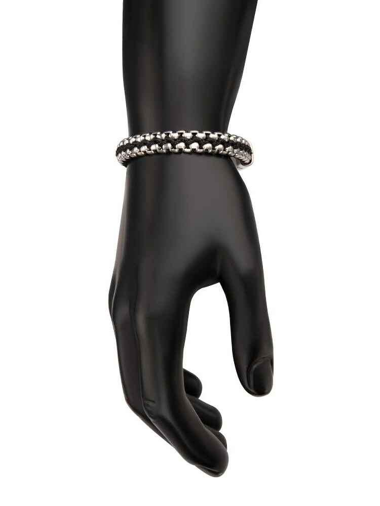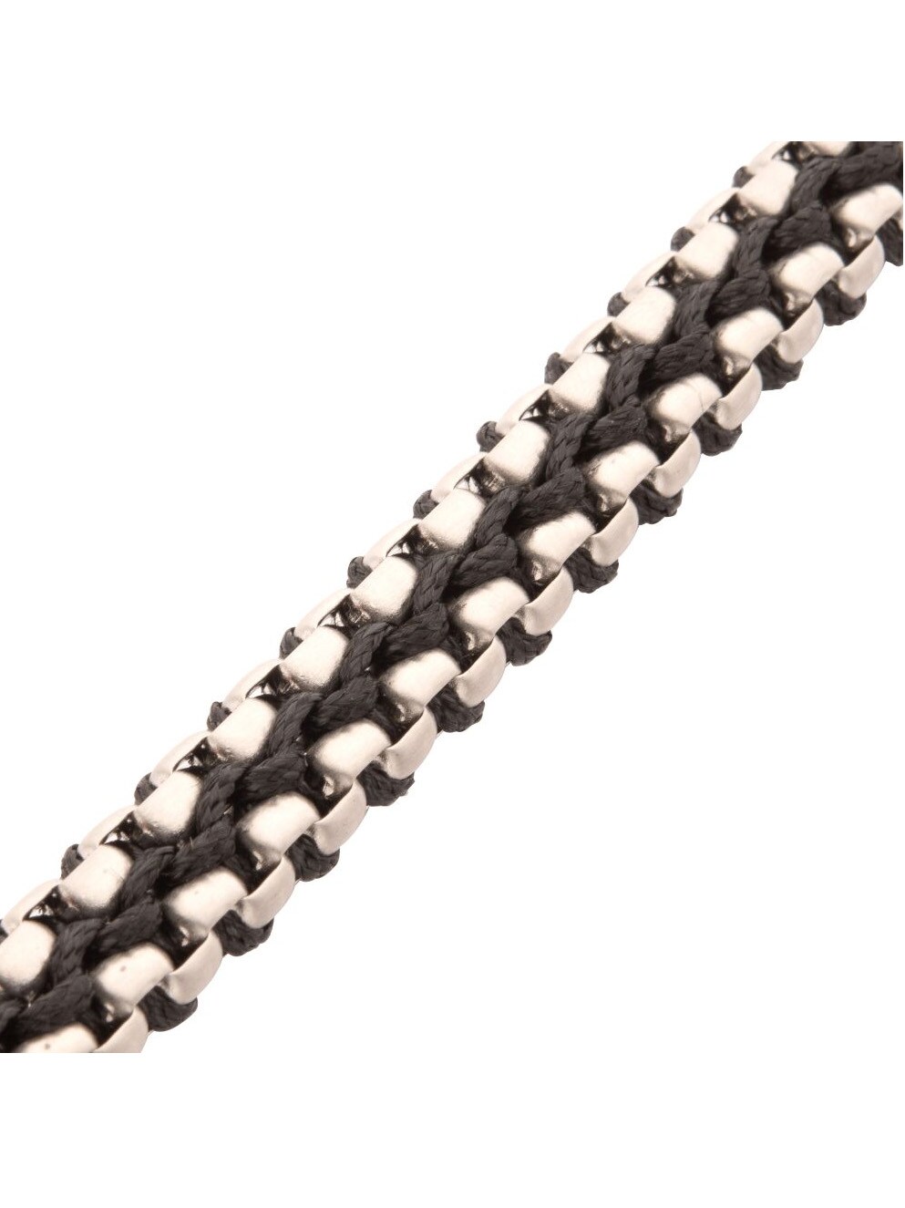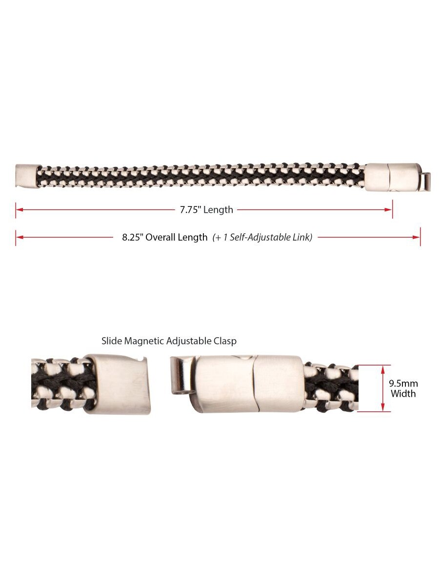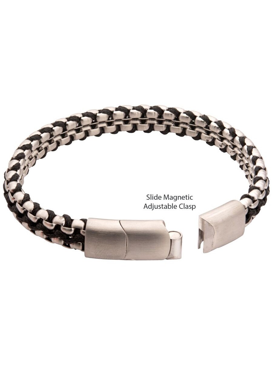 Bransoletka męska z matowej stali nierdzewnej 316L i czarnego woskowanego sznurka z magnetycznym zapięciem przesuwnym