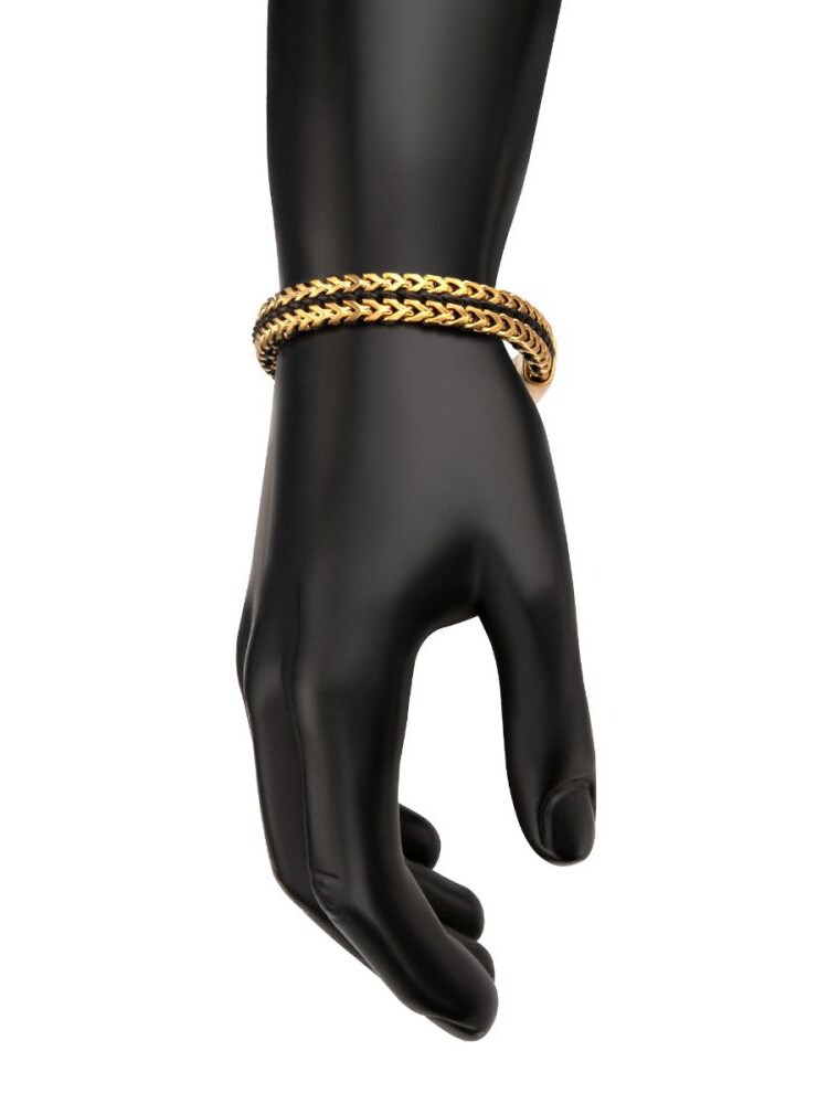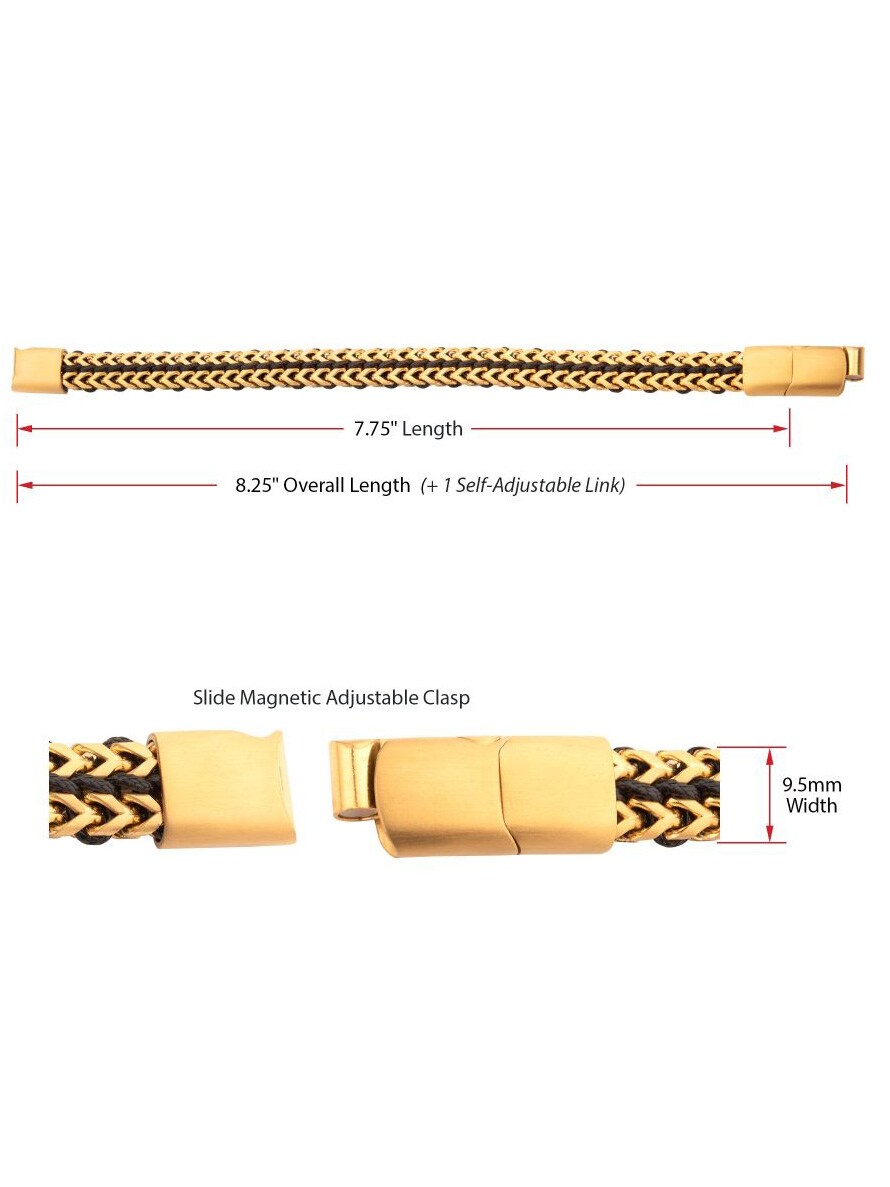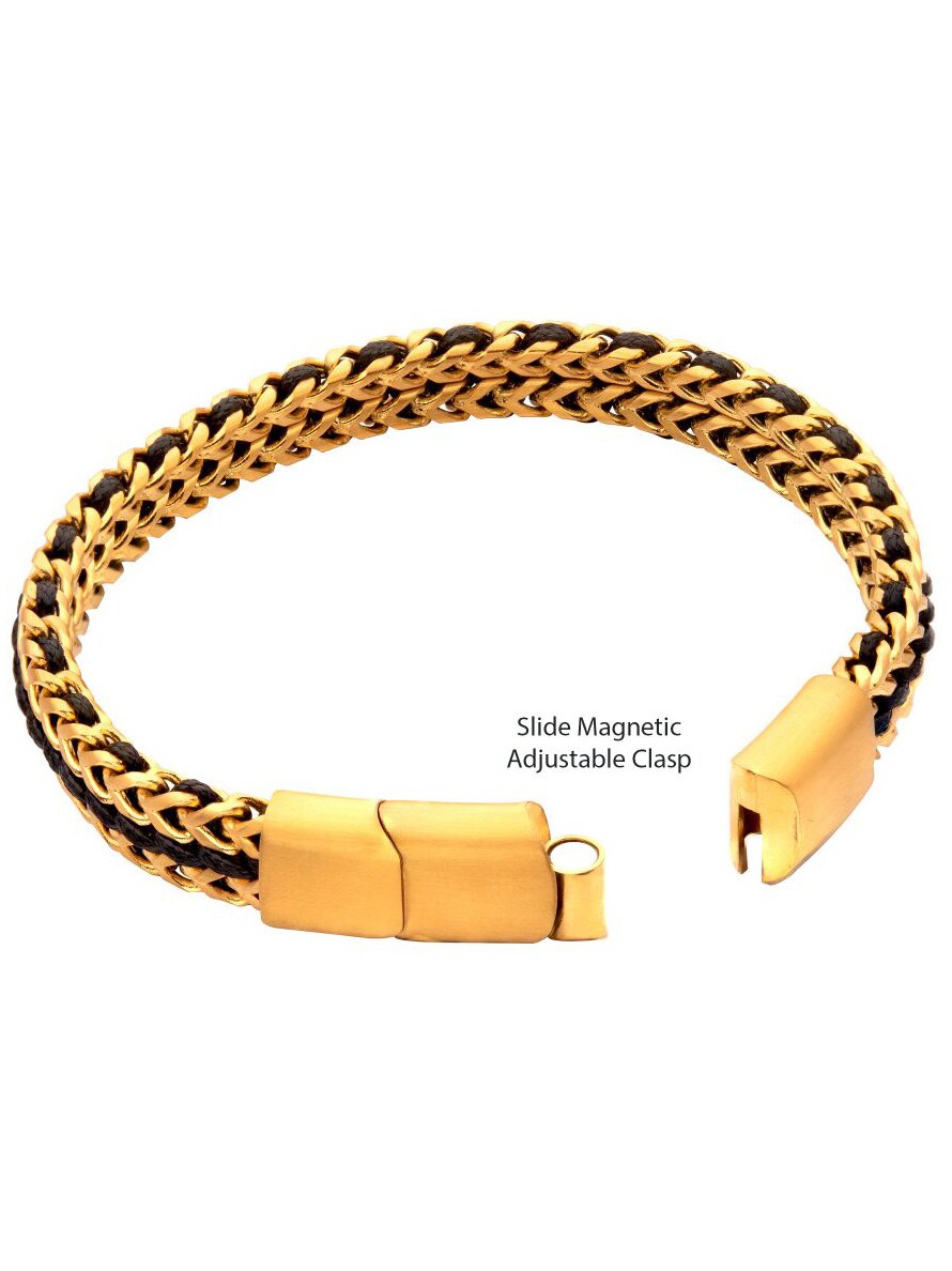 Męska bransoletka z pozłacanej stali nierdzewnej IP w splocie Foxtail i czarnego woskowanego sznurka z magnetycznym zapięciem przesuwnym