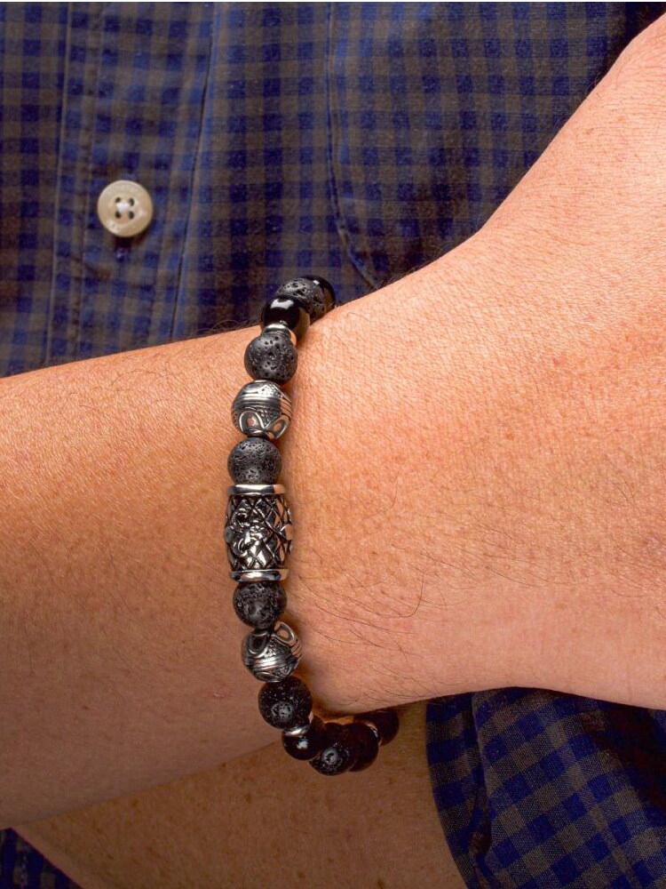 Noś ogień na nadgarstku – bransoletka z lawy i onyksu to dodatek, który mówi więcej niż słowa. Surowa, męska, autentyczna.