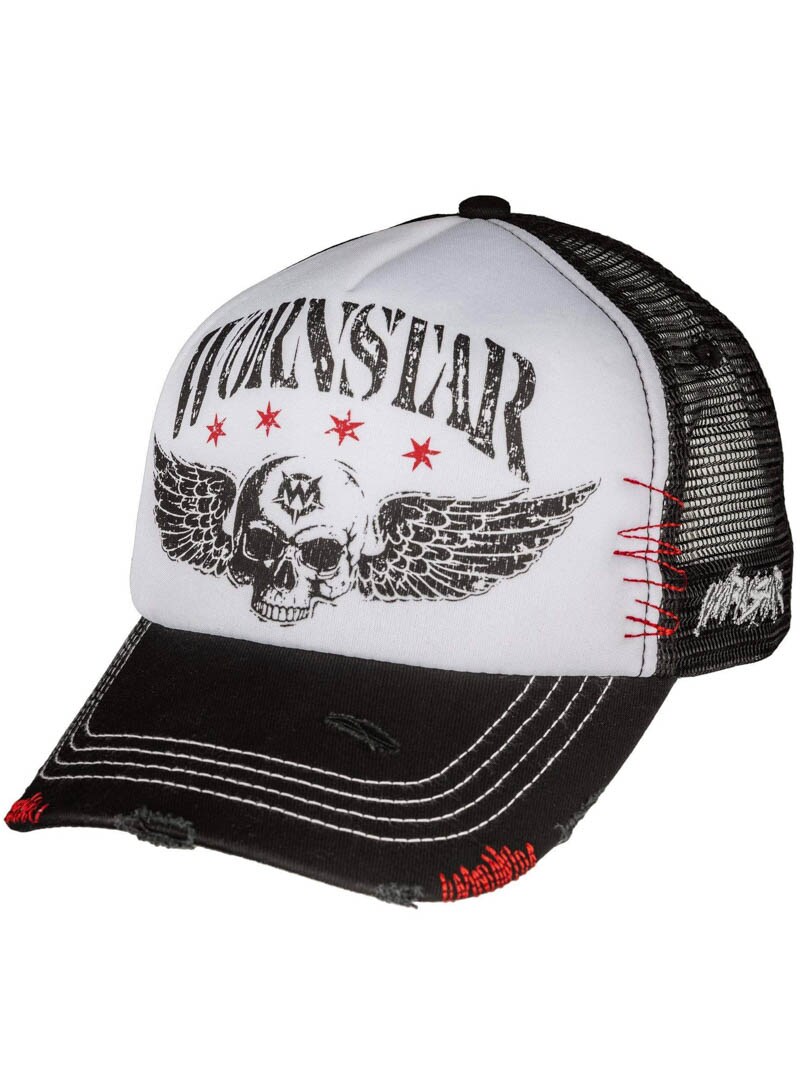 Wornstar Ascension Trucker Czapka w czarno-białym kolorze z motywem czaszki i postarzanymi detalami to pozycja obowiązkowa dla entuzjastów rocka.