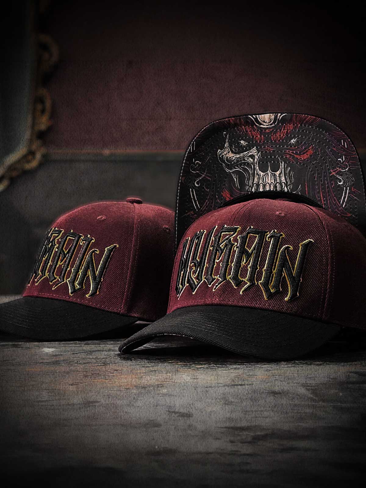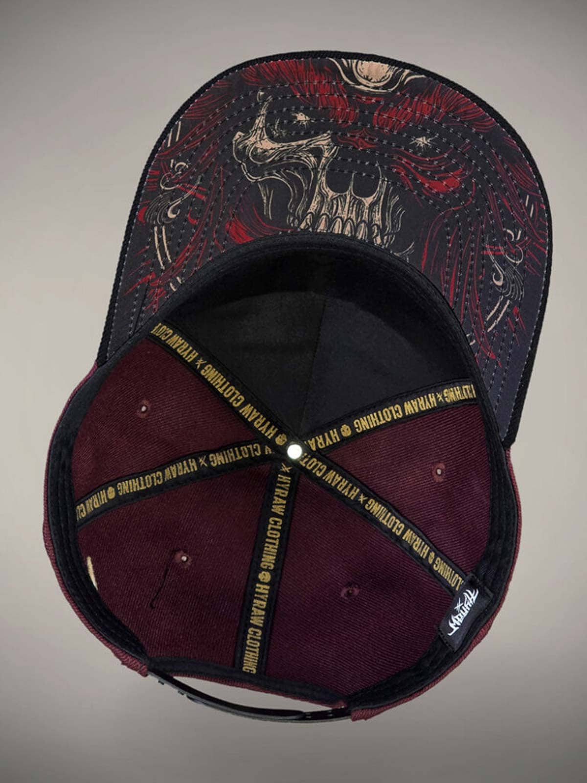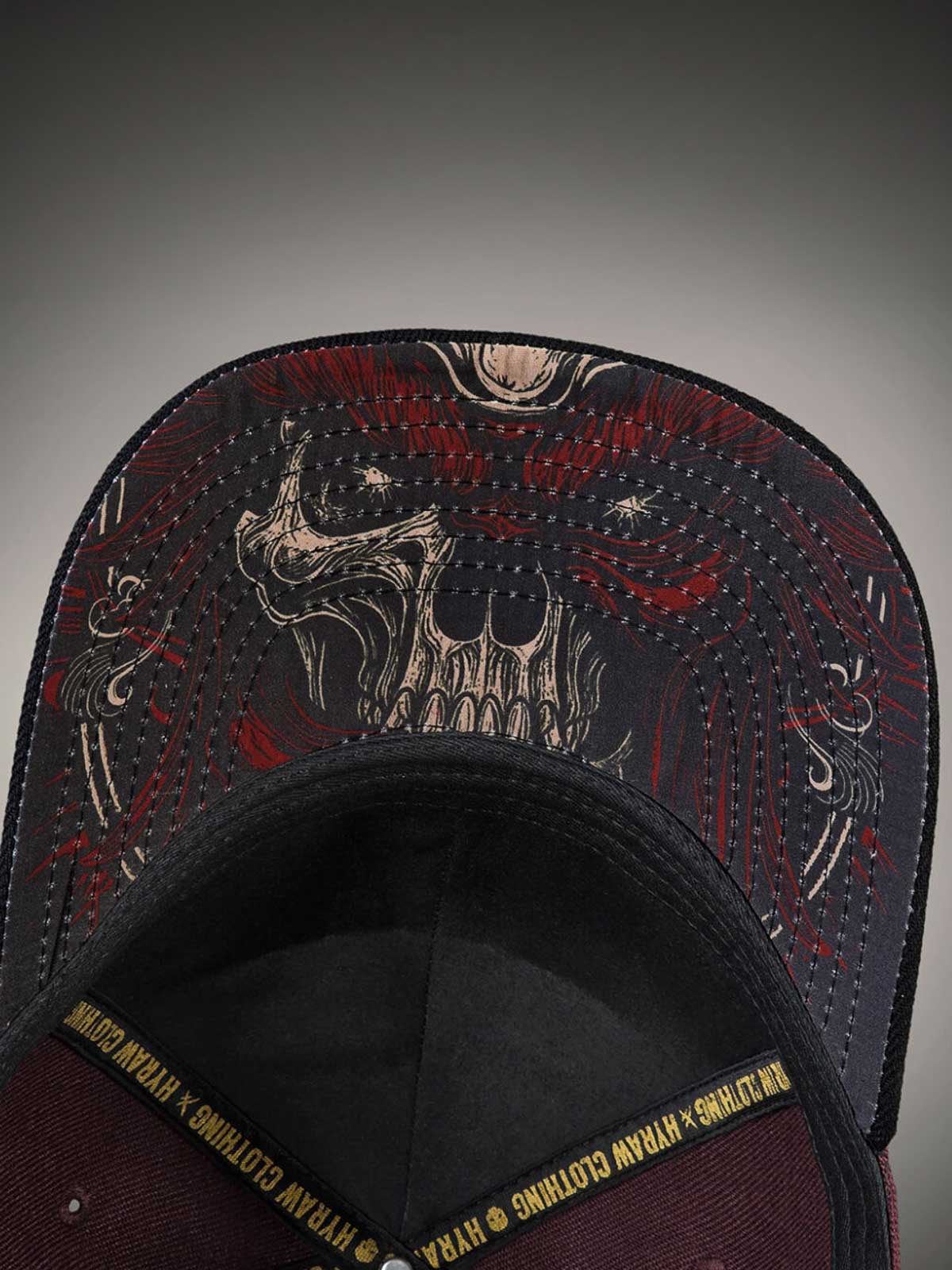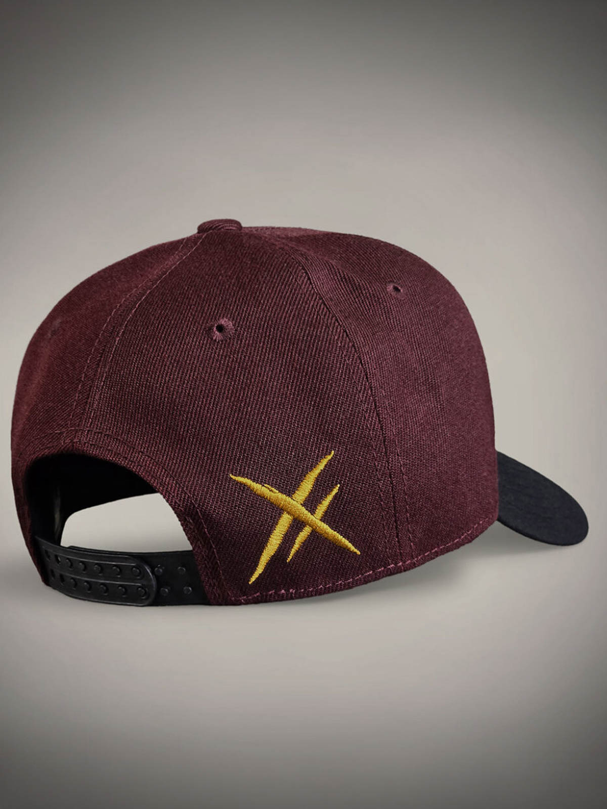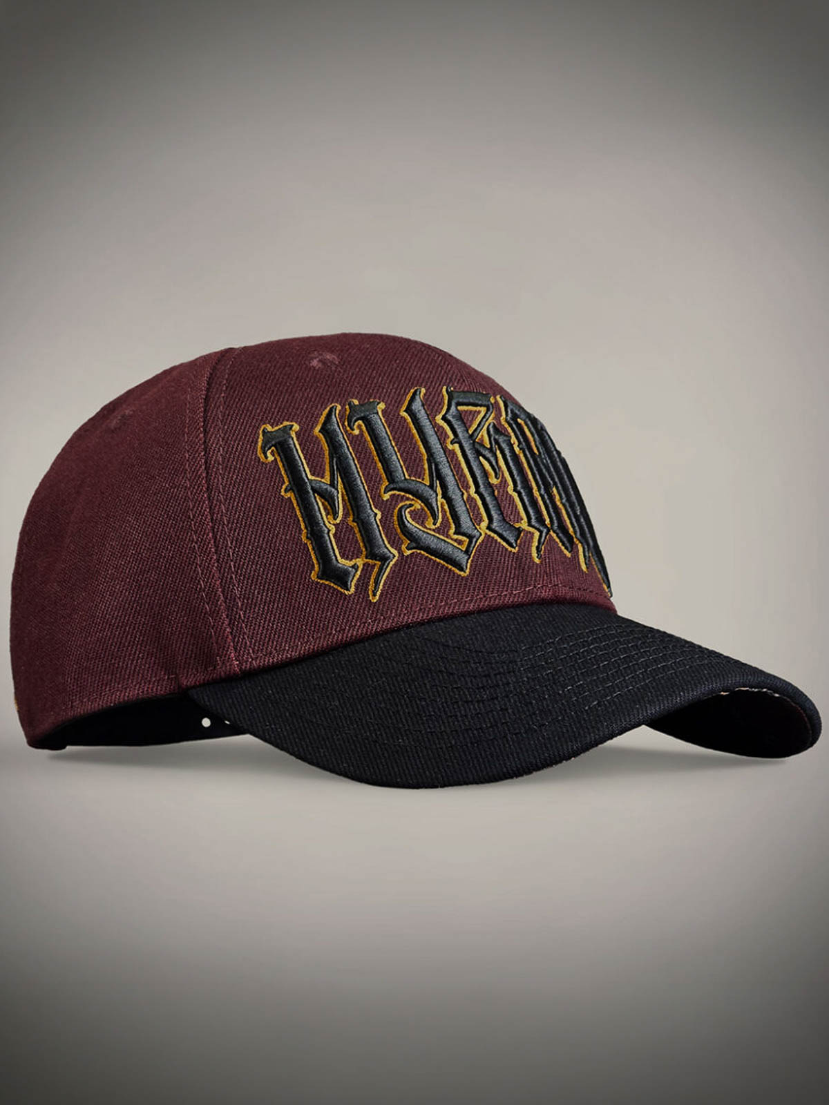 Bordowa czapka z zakrzywionym daszkiem, zdobiona skrupulatnie wykonaną czarno-żółtą logotypą z przodu oraz żółtym haftowanym motywem z tyłu. Spód daszka zaprojektowany jest z unikalnym motywem, który nadaje czapce efektowny detal.