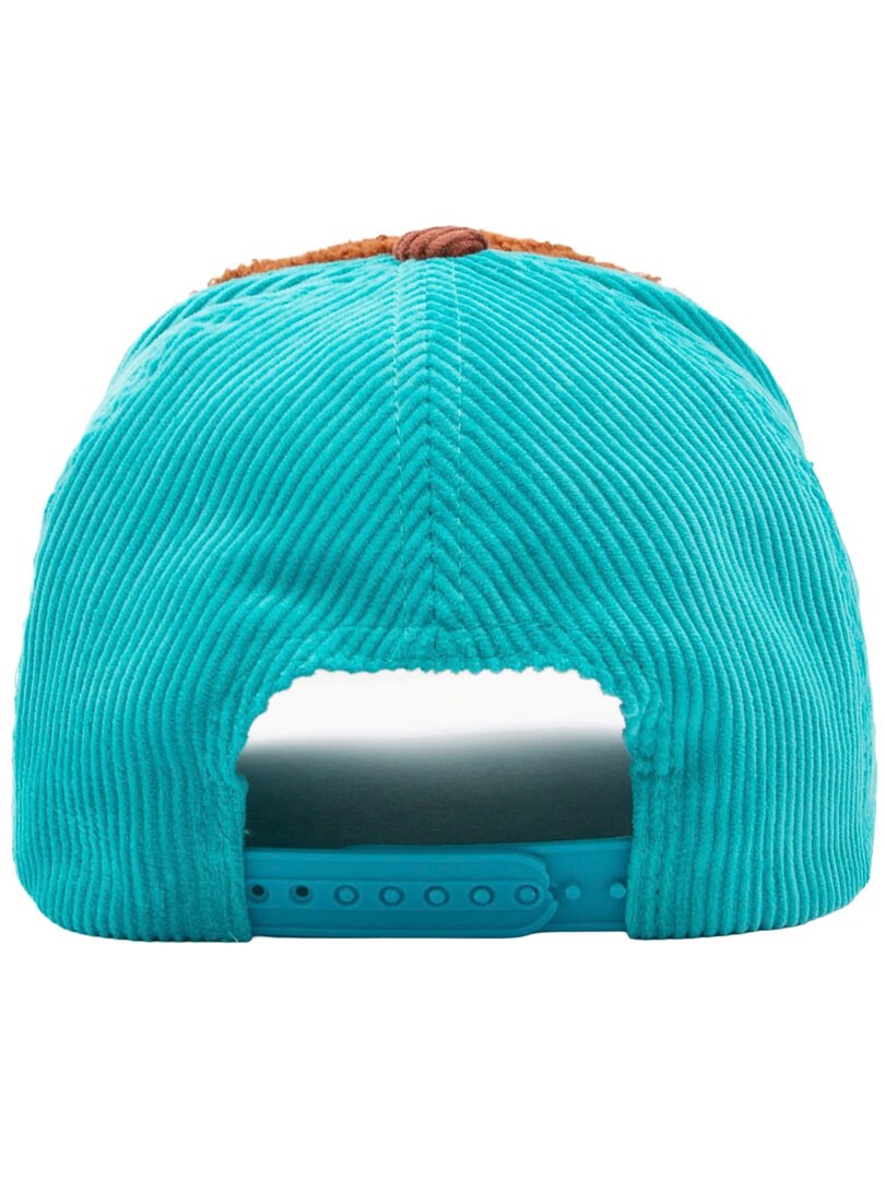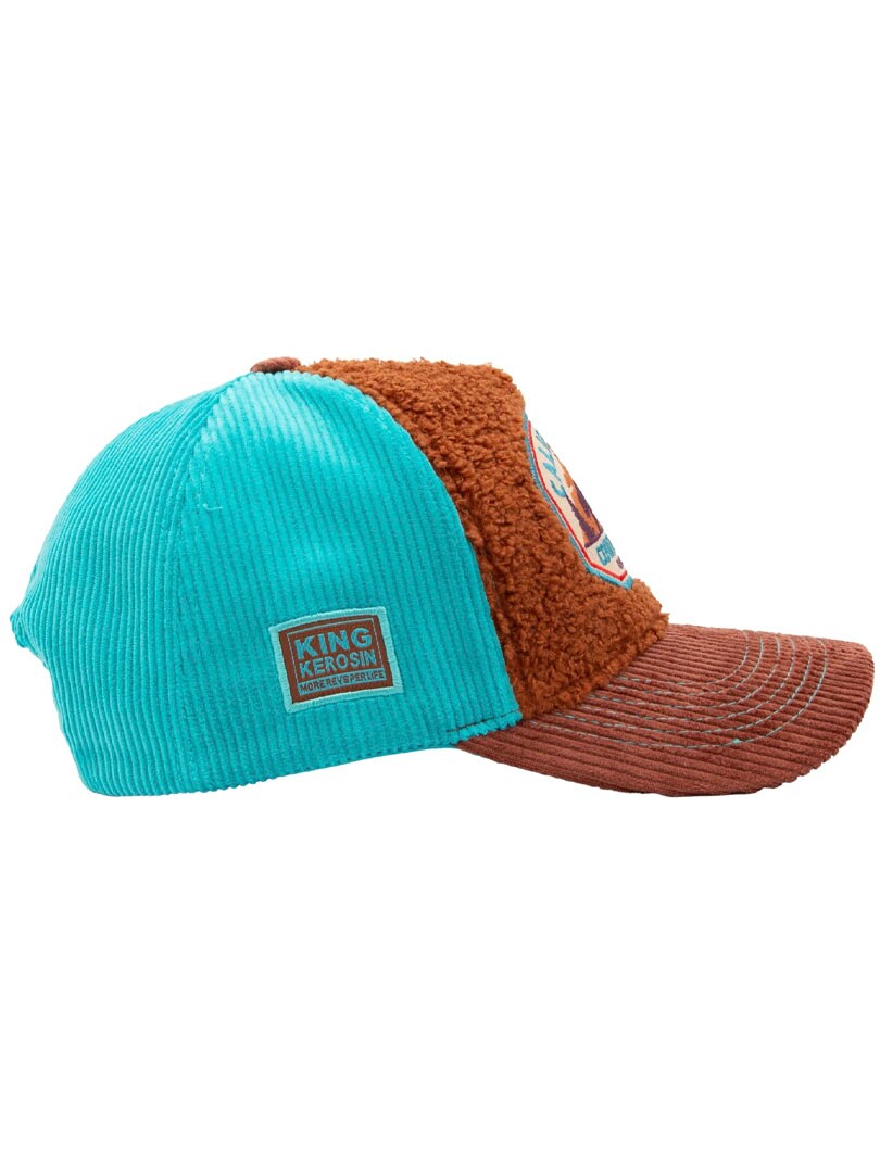Połączenie miękkiej tkaniny typu teddy z przodu oraz luźnego sztruksu nadaje czapce wyrazisty wygląd z nutą retro. Przód zdobi dekoracyjna naszywka z krajobrazem, niedźwiedziem oraz napisem „California Country Park”.