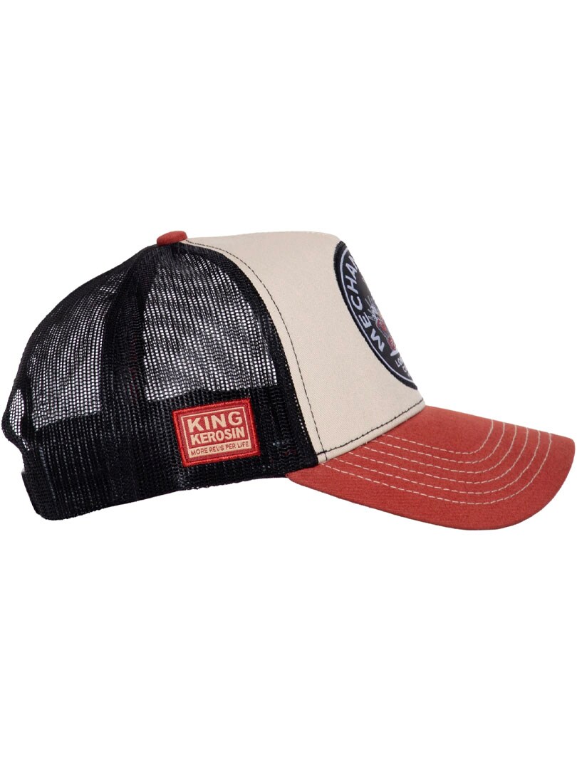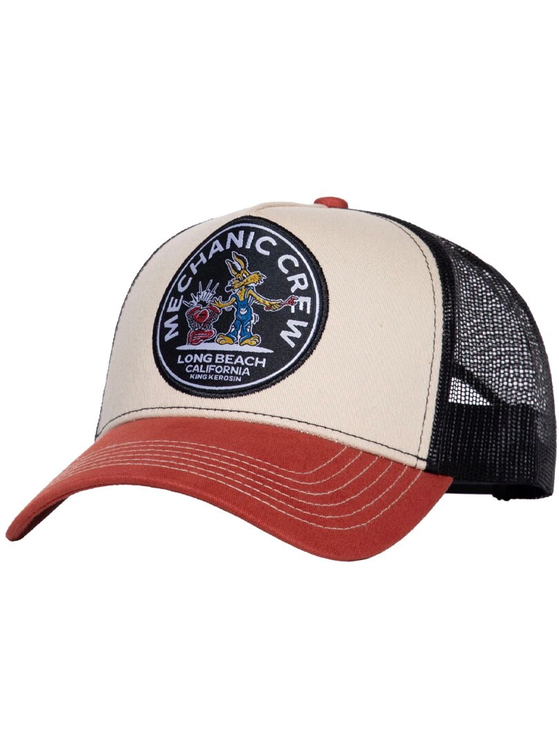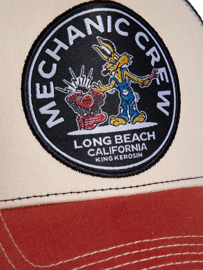 Stylowa czapka z czerwonym daszkiem i czarną siateczką z tyłu. Z przodu znajduje się duża, bogato zdobiona naszywka przedstawiająca dwie dzikie postacie mechaników w akcji, która natychmiast przyciąga uwagę. Posiada zapięcie typu snapback oraz zakrzywiony daszek.