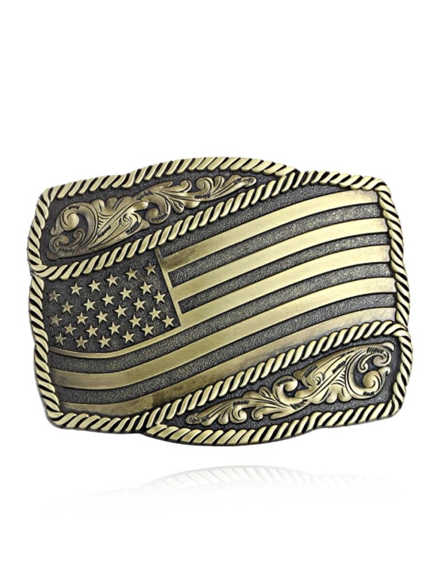 Klamra do paska z flagą USA w antycznym wykończeniu mosiężnym.
