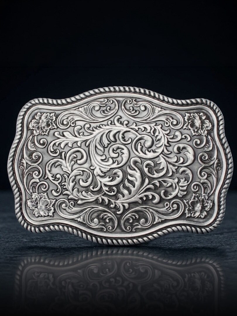 Wyrazista klamra do paska w ponadczasowym stylu vintage. Szczegółowy wzór ozdobiony jest eleganckim, grawerowanym ornamentem, który tworzy ponadczasowy i wyrafinowany wygląd. Pasuje do pasków o szerokości do 4 cm, co ułatwia łączenie jej z większością pasków z wymiennymi klamrami.