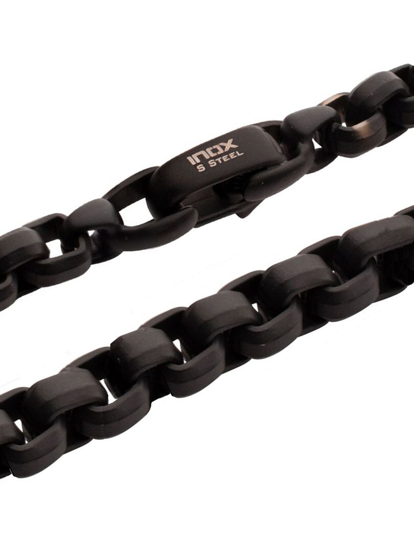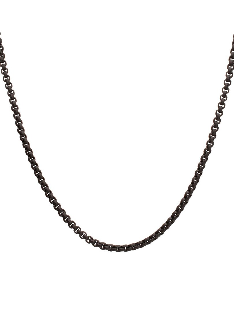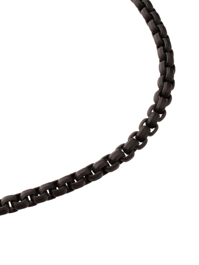 Łańcuszek typu box chain wykonany ze stali nierdzewnej z matowym wykończeniem i czarną powłoką IP. Łańcuszek dla osób poszukujących męskiej siły i stylu, stworzony z myślą o codziennym użytkowaniu i wywieraniu wrażenia. Wykonany ze stali nierdzewnej.