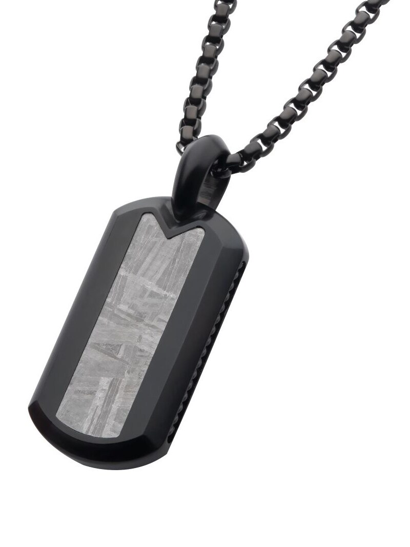 Sięgnij po biżuterię z innego wymiaru – dosłownie. Ten unikalny naszyjnik typu Dog Tag wykonany jest z wytrzymałej stali nierdzewnej z matowym, czarnym wykończeniem oraz oryginalnym fragmentem meteorytu Muonionalusta, który spadł na ziemię w Skandynawii ponad 120 000 lat temu.