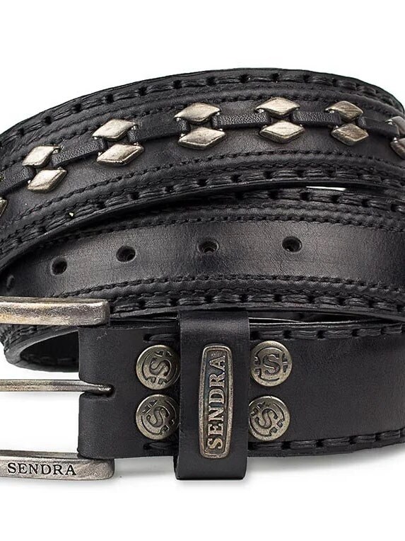 Solidny i stylowy pasek z naturalnej skóry, ozdobiony niklowanymi elementami, które nadają ponadczasowy, rockowo-westernowy charakter. Świetnie pasuje do dżinsów i kowbojek!