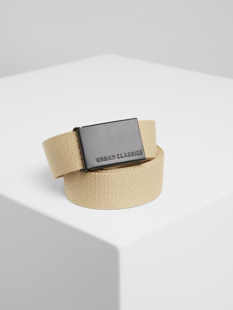 Klasyczny materiałowy pasek. Jest regulowany i zapinany na metalową klamrę. Szerokość 3,8 cm. Dostępny w kilku kolorach!