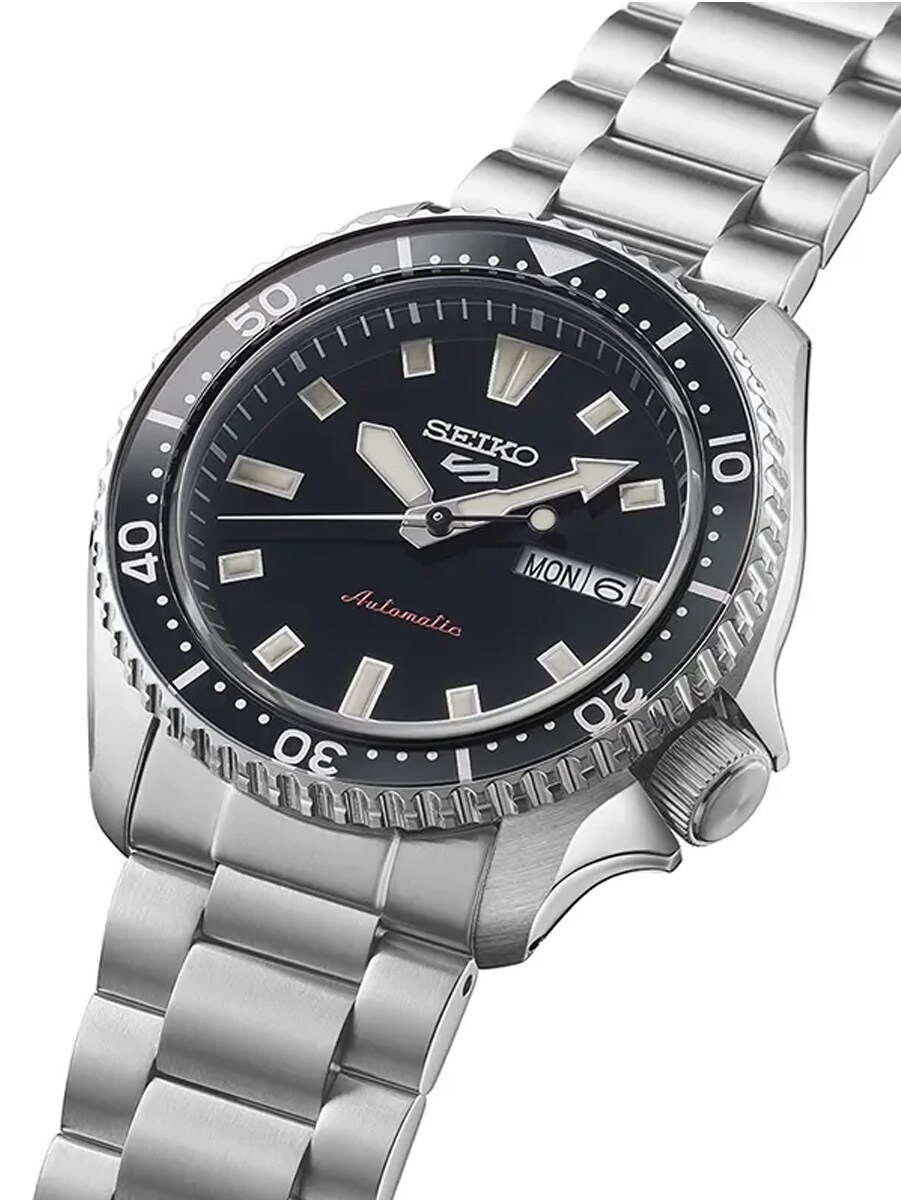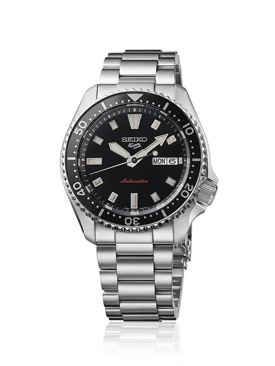 Seiko 5 Sports SRPL85K1 oferuje ikoniczny styl nurkowy w smuklejszym i bardziej kompaktowym rozmiarze 38,5 mm. Czarna tarcza ma wyraźne indeksy i wskazówki LumiBrite oraz wyświetlanie dnia i daty na godzinie trzeciej dla optymalnej czytelności. Zegarek napędzany jest niezawodnym automatycznym mechanizmem 4R36, który ładuje się ruchem użytkownika i jest widoczny przez zakręcany szklany dekiel. Koperta i bransoleta ze stali nierdzewnej zapewniają solidne wrażenie, a szkło Hardlex chroni przed wstrząsami. Z wodoszczelnością 100 metrów, jest to wszechstronny zegarek zarówno na co dzień, jak i do aktywności.