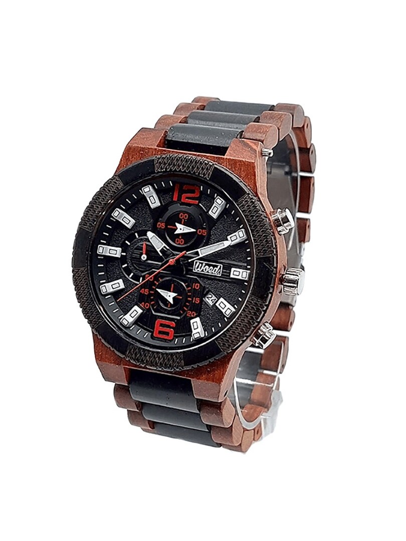 Ekskluzywny ręcznie wykonany zegarek z czerwonego drzewa sandałowego o luksusowym i wyrazistym designie. Model należy do serii Premium marki Woed i łączy solidne rzemiosło z nowoczesną, wielofunkcyjną tarczą. To idealny wybór dla osób poszukujących wyjątkowego dodatku z charakterem i premiumowym wykończeniem.