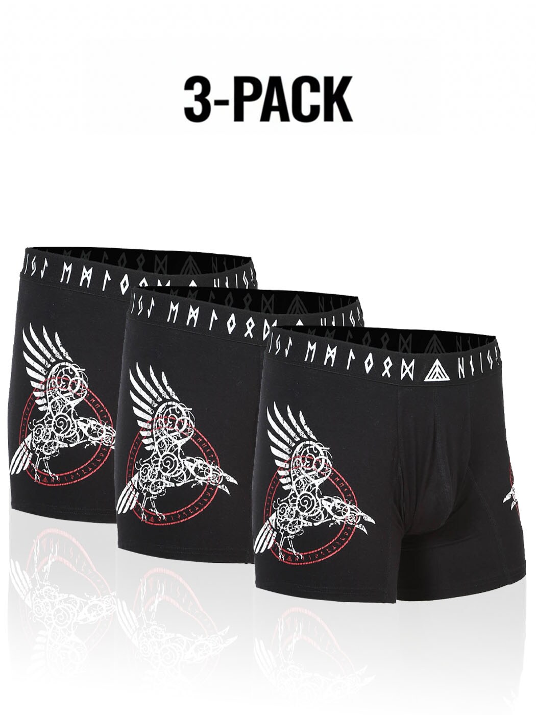 Doświadcz wyjątkowego komfortu dzięki tym miękkim i elastycznym bokserkom z bambusa. Materiał oddycha, odprowadza wilgoć i pozostaje świeży przez dłuższy czas – idealne zarówno na co dzień, jak i do treningu. Design ma unikalny nordycki charakter z nadrukiem inspirowanym wikingami oraz szerokim pasem z eleganckim logo. Dostępne w korzystnym 3-paku!