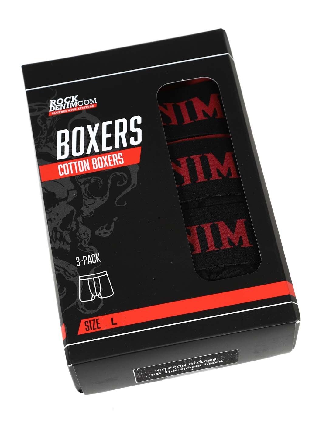 3-pak bokserek RockDenim z nadrukiem płonącej czaszki
