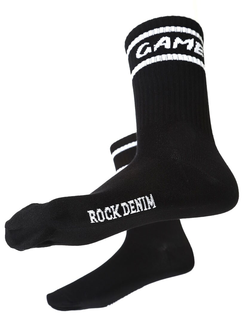 Skarpetki są wykonane z wysokiej jakości bambusa, który ma dobre właściwości, takie jak regulacja temperatury, dodatkowa oddychalność i transport potu. Bambus jest bardziej miękki niż na przykład bawełna. Napis „Rockdenim” pod stopą. Roślina bambusowa ma naturalną obronę przed bakteriami, co oznacza, że rośnie bez toksycznych pestycydów. To zrównoważony rozwój i coś, co z dumą oferujemy!
