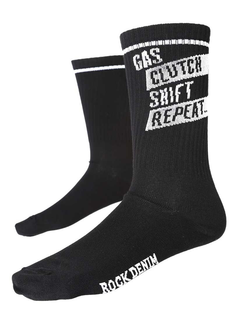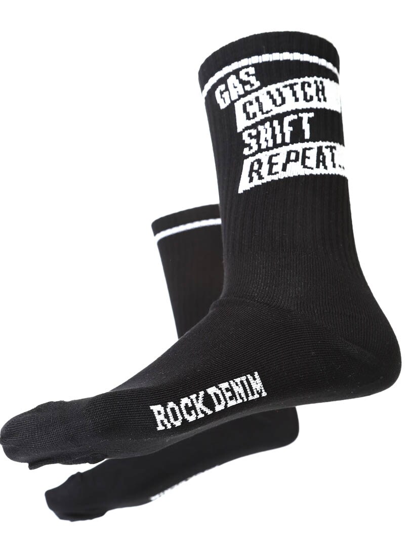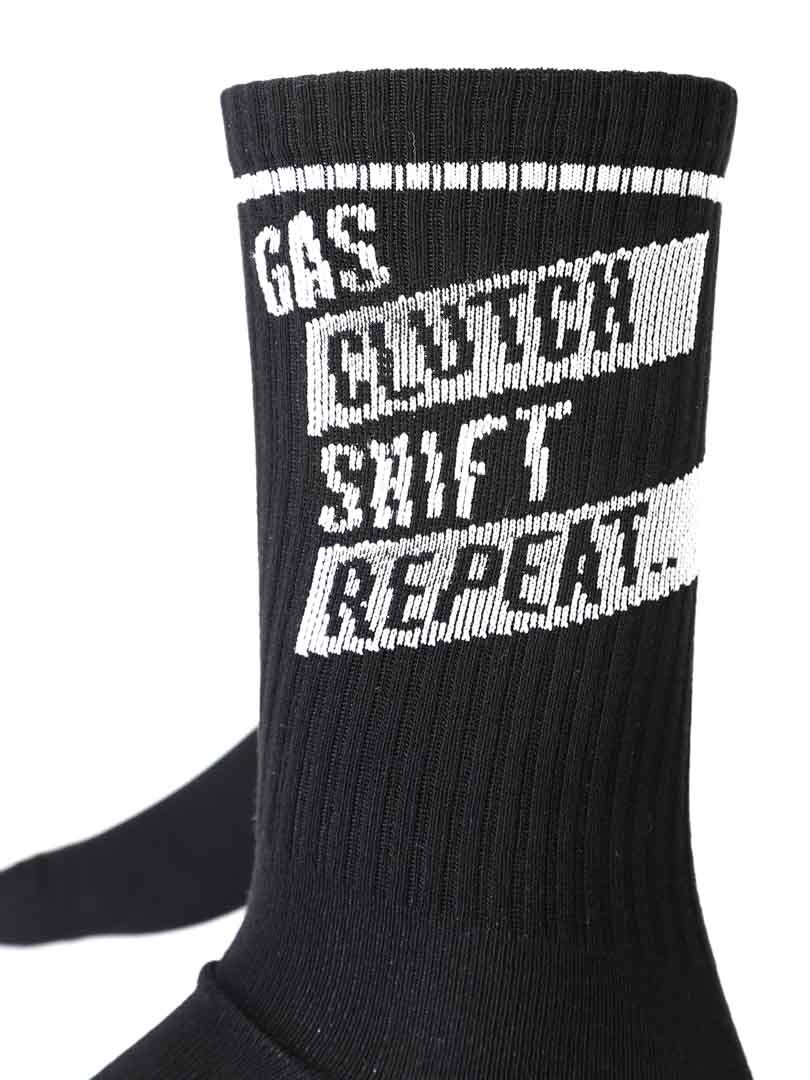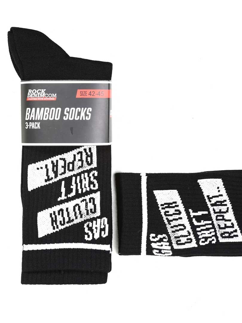 3-pak wysokiej jakości skarpet bambusowych z napisem „Gas, clutch, shift, repeat”.