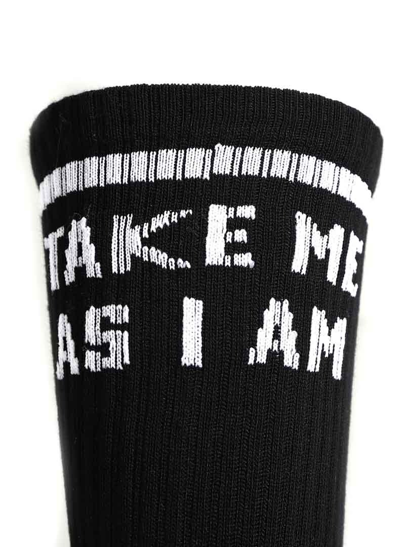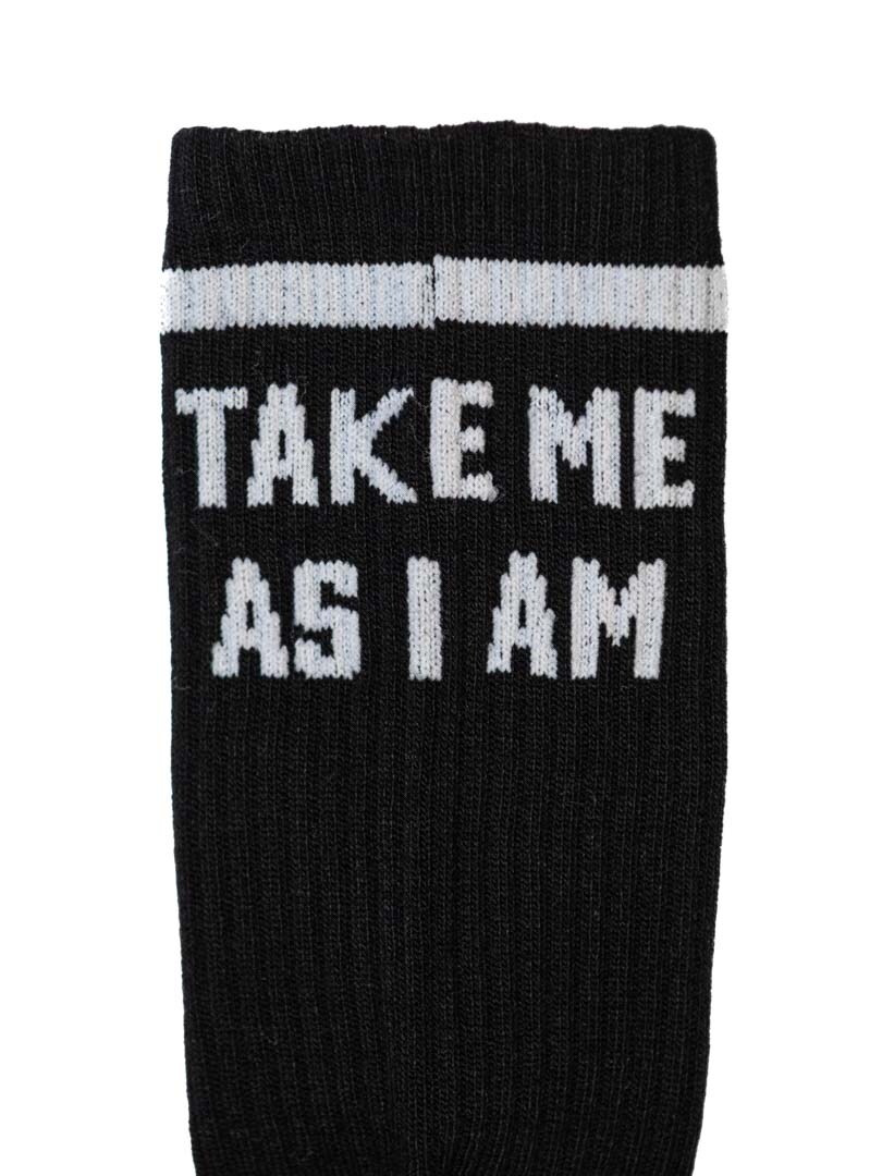 3-pak wysokiej jakości skarpet bambusowych z napisem „Take me as I am or watch me leave”.
