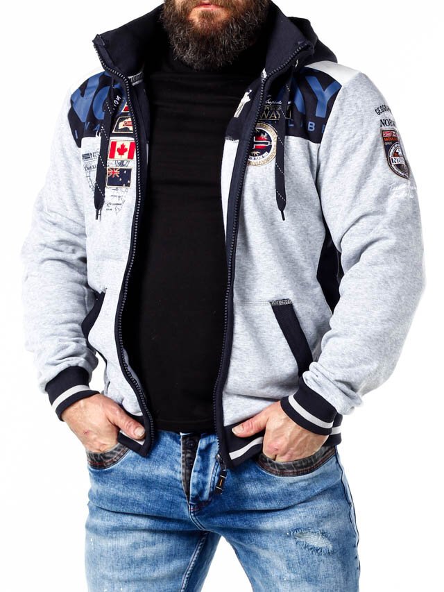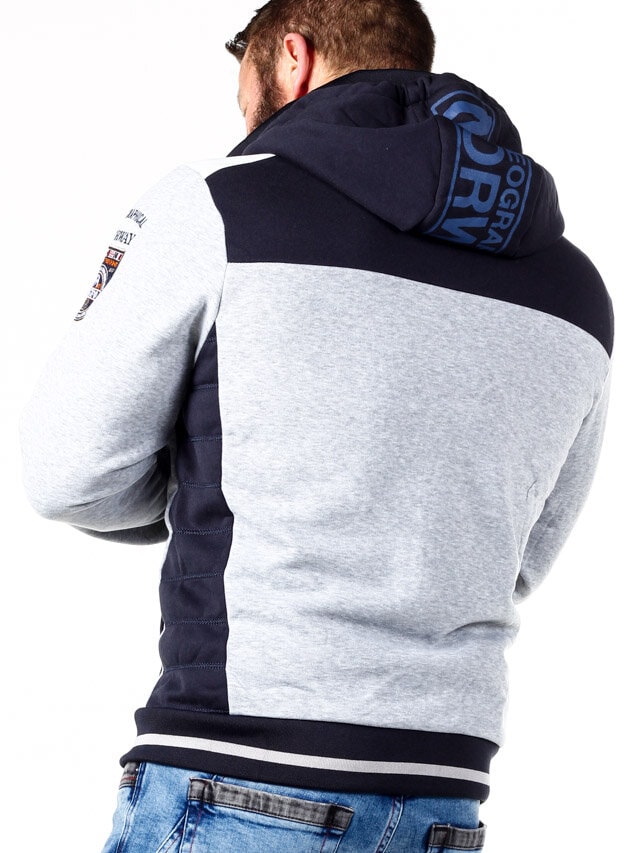 Dwukolorowa bluza z miękką wyściełaną stroną wewnętrzną i obszernym kapturem ze sznurkami do regulacji. Zaprojektowana z nadrukiem, wyszywanymi detalami i widocznym logo. Dwie kieszenie na brzuchu i prążkowane ściągacze na końcach.