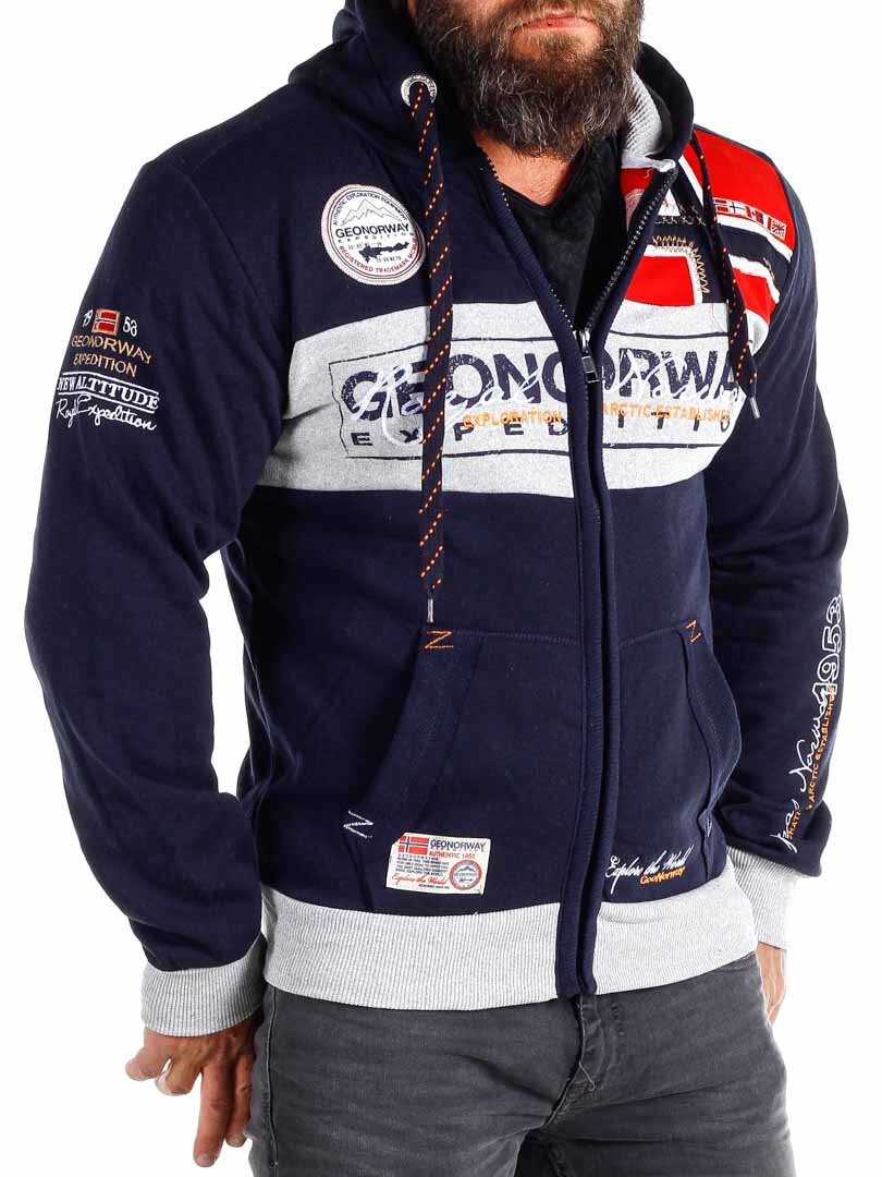 Bluza z obszernym kapturem, zapinana na suwak, z dużymi kieszeniami na brzuchu. Logo i wzór marki są widoczne zarówno z przodu, jak i z tyłu. Przy rękawach znajdują się białe ściągacze.