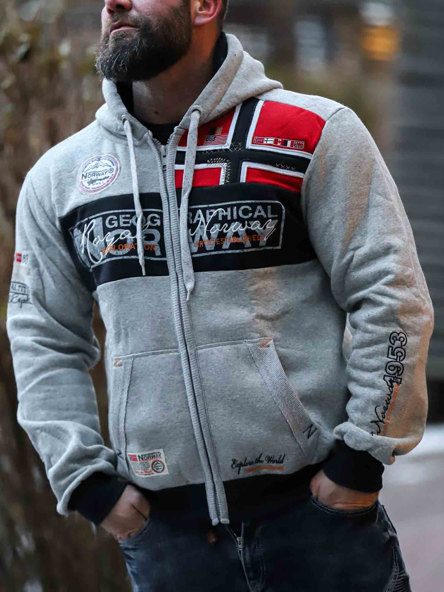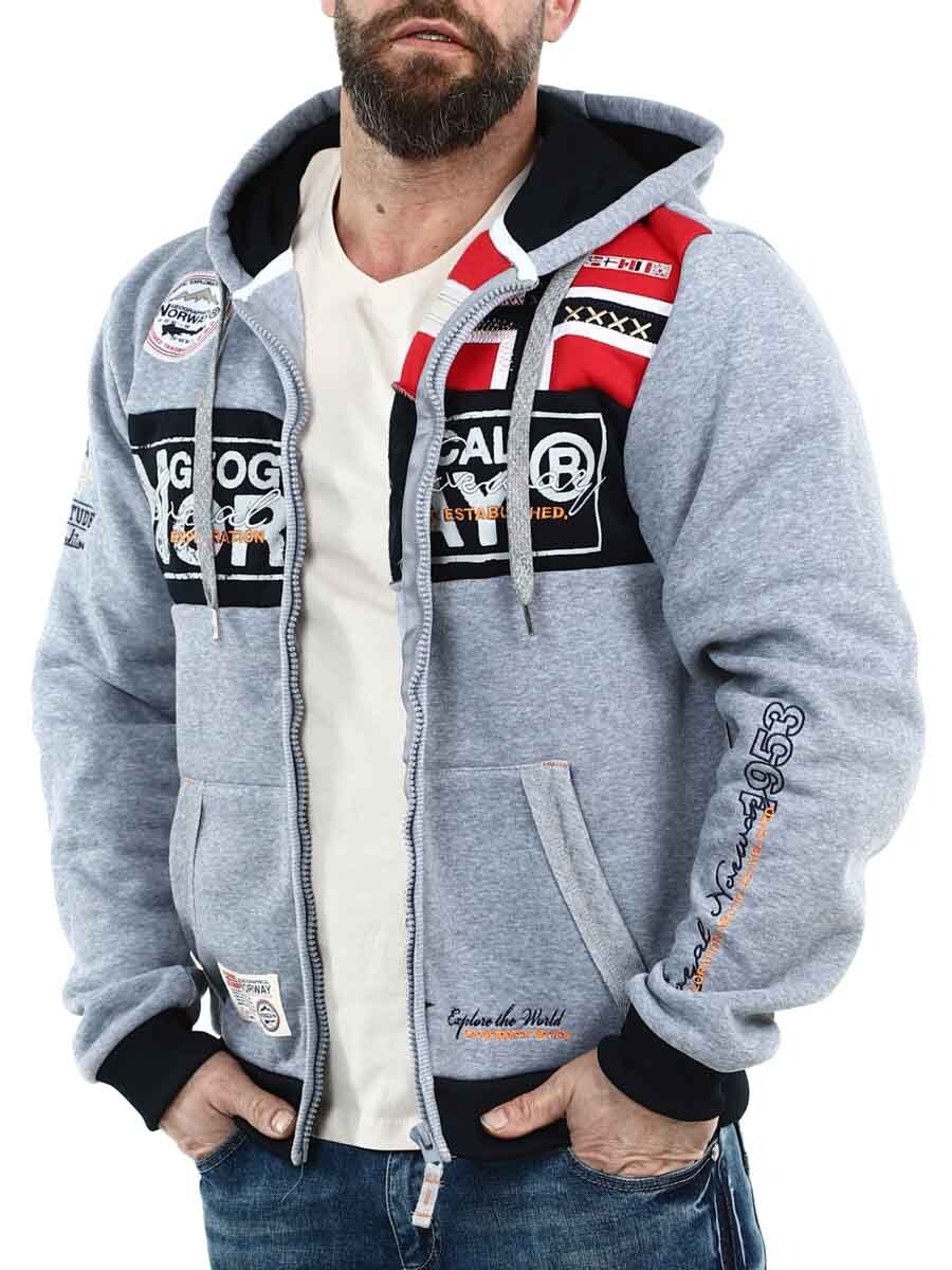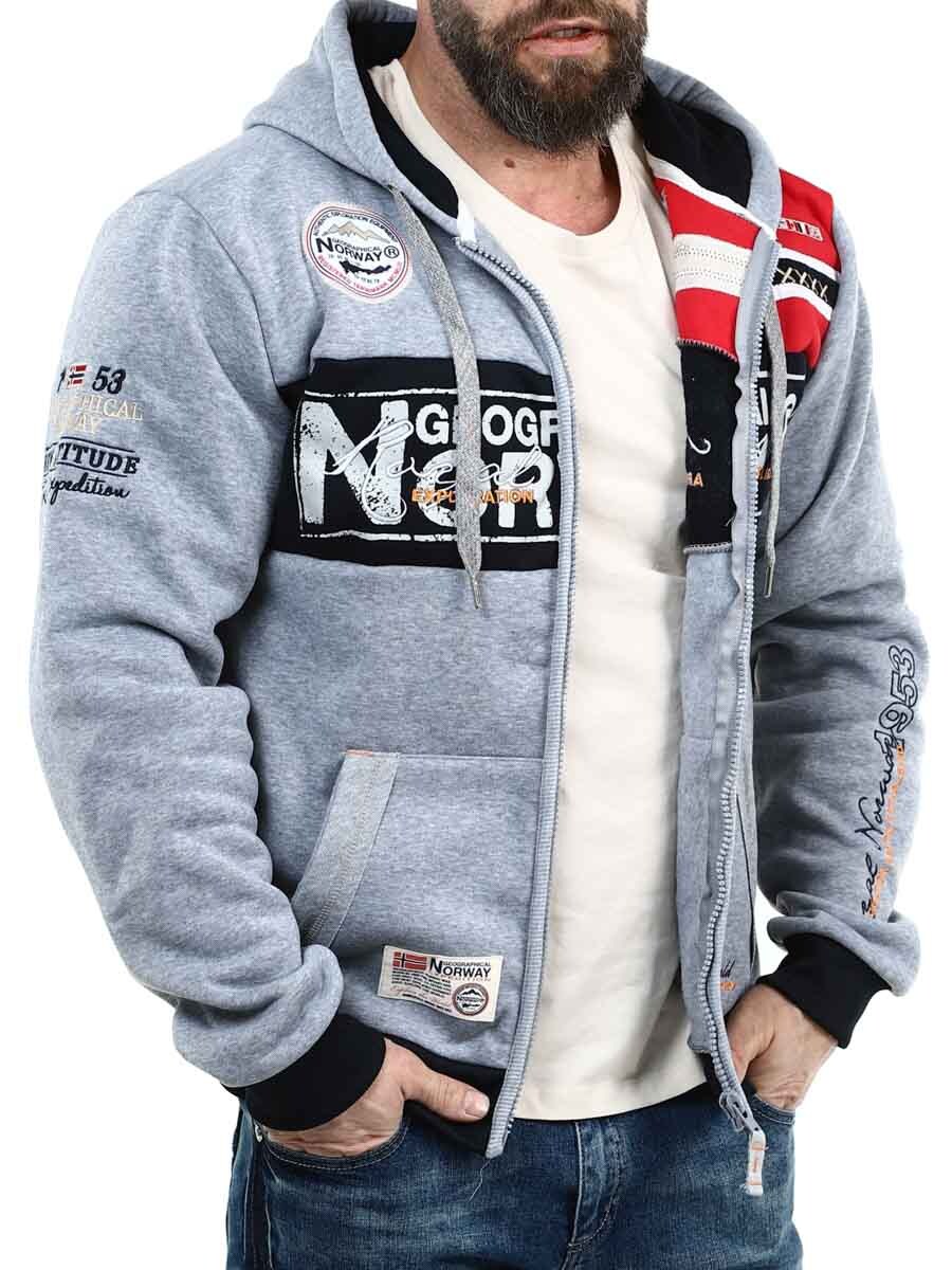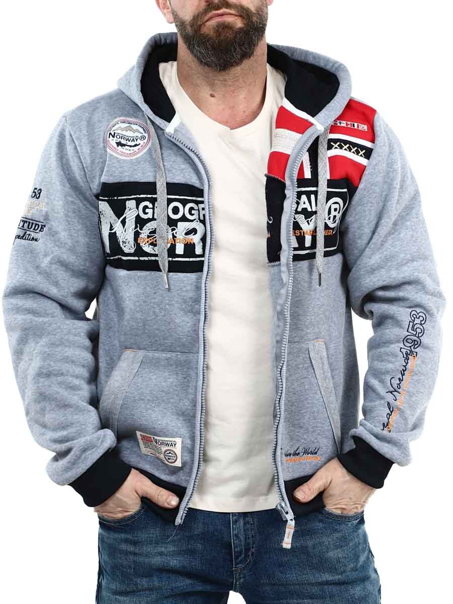 Bluza z obszernym kapturem, zapinana na suwak, z dużymi kieszeniami na brzuchu. Logo i wzór marki są widoczne zarówno z przodu, jak i z tyłu. Przy rękawach znajdują się granatowe ściągacze.