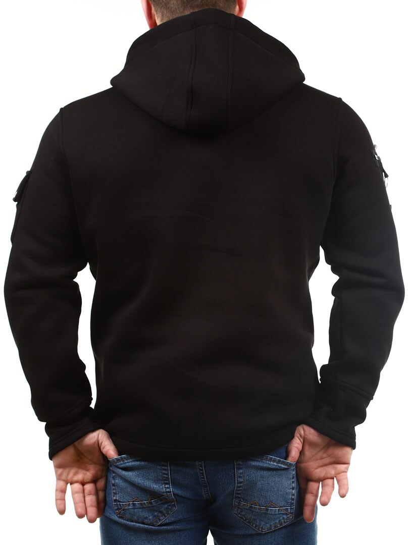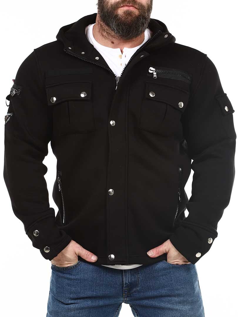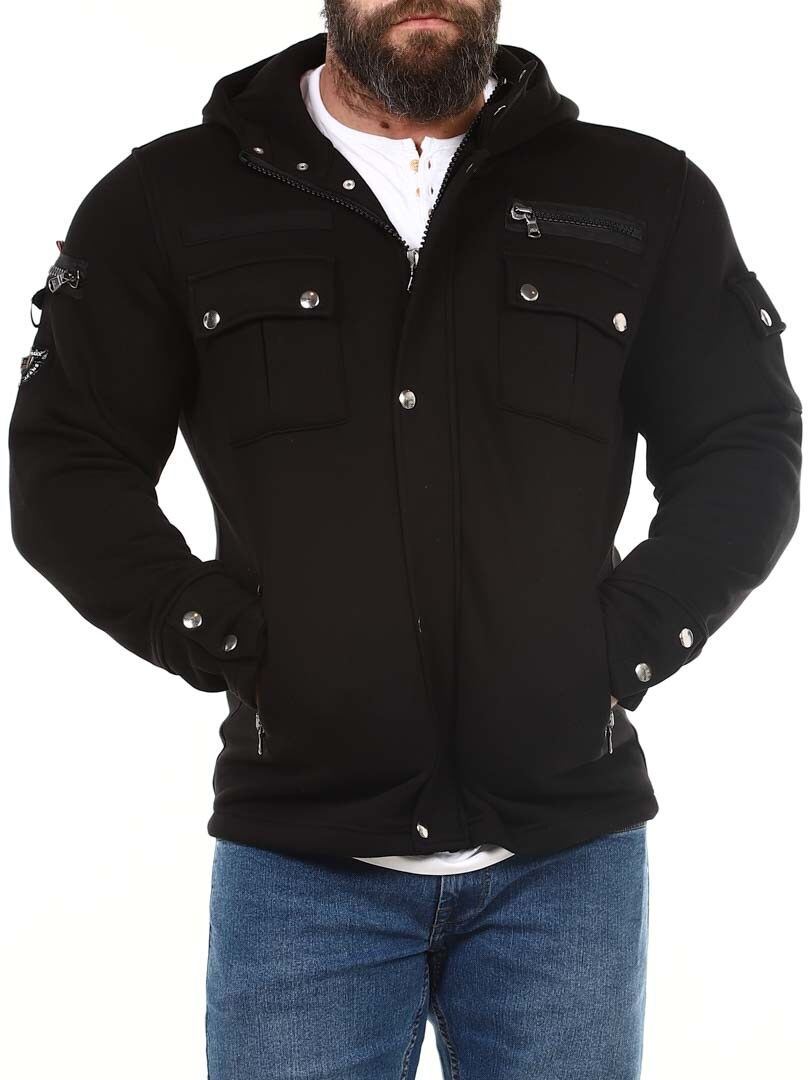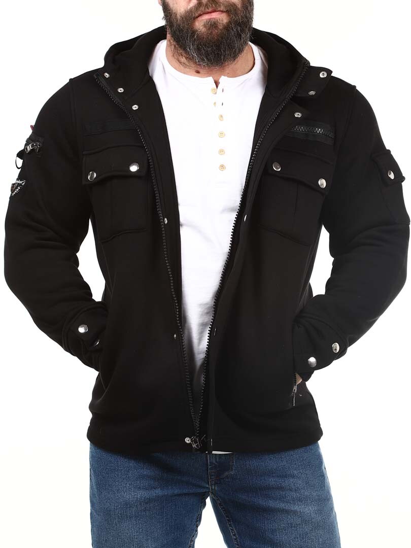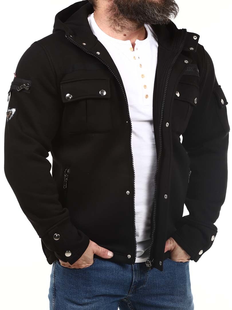 Lżejsza kurtka z materiału dresowego, którą można nosić również jako grubszy sweter. Zaprojektowana z kapturem, praktycznymi kieszeniami i zamkami błyskawicznymi, co nadaje jej bardziej stylowy wygląd. Kurtka zapinana jest zarówno na guziki, jak i zamek błyskawiczny.