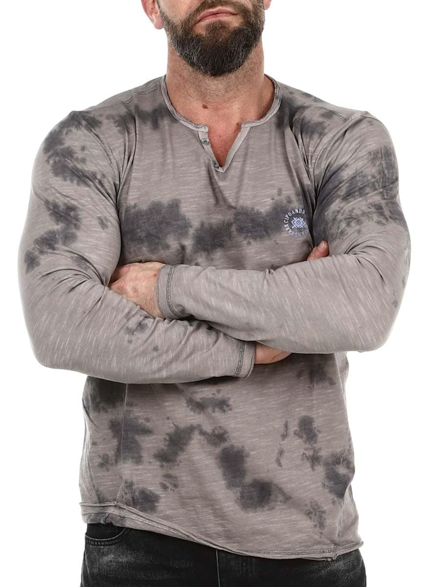 Sweter w stylu batik, z surowymi wykończeniami. Posiada dekolt w serek z guzikami i logo na piersi. Wszechstronny element garderoby, idealny zarówno na co dzień, jak i na luźny weekendowy look.