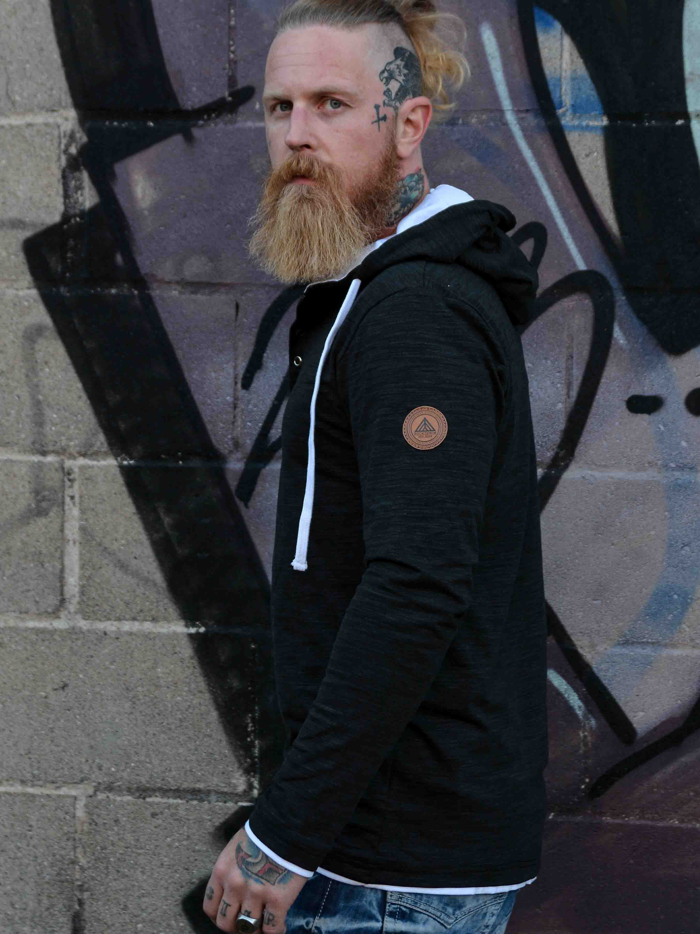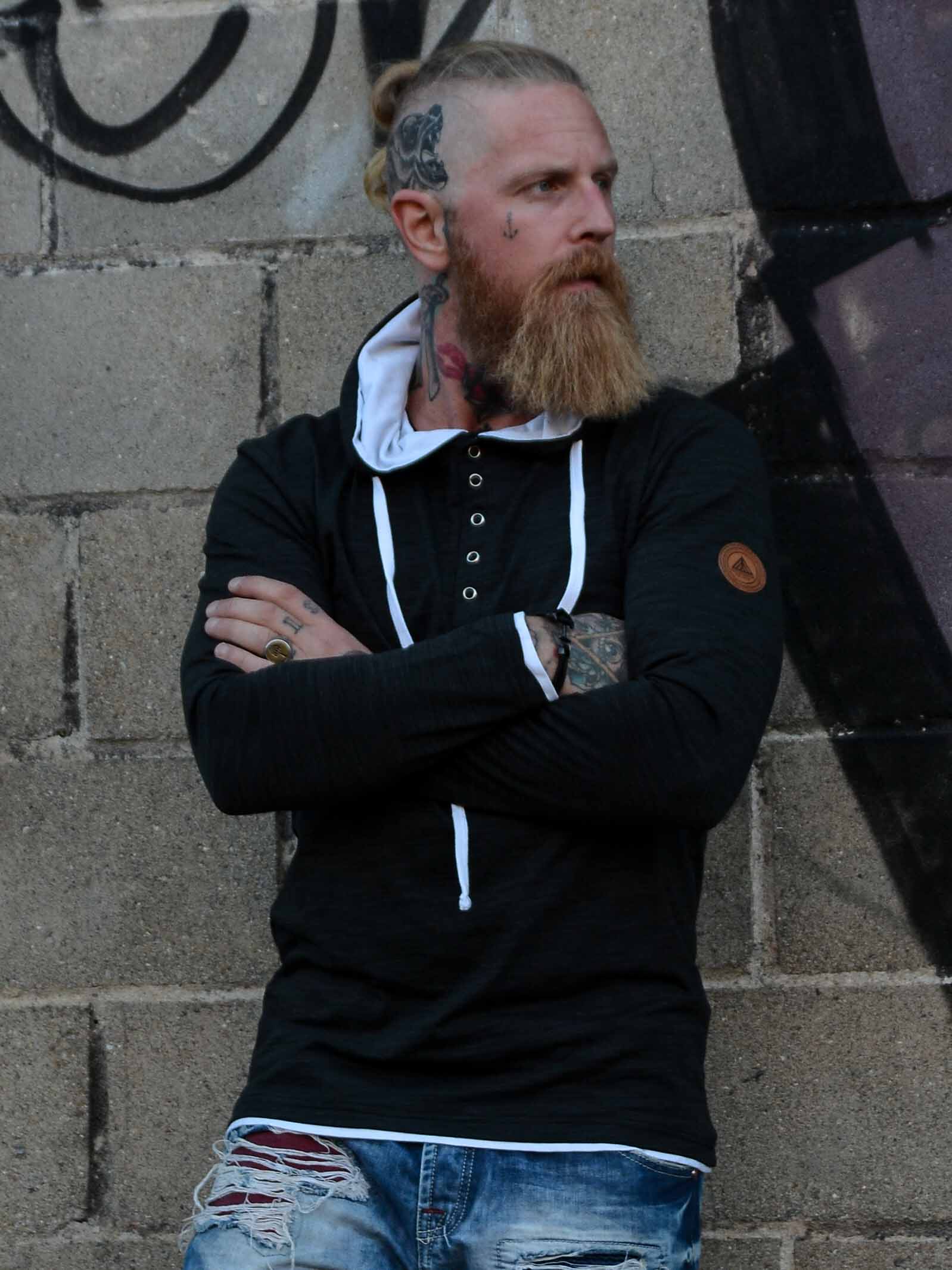 Bluza z długim rękawem z miękkiego i wygodnego materiału. Posiada zapięcie na guziki przy szyi, kaptur ze sznurkiem oraz naszywkę z logo na rękawie. Ta bluza jest dostępna wyłącznie w Rockdenim!