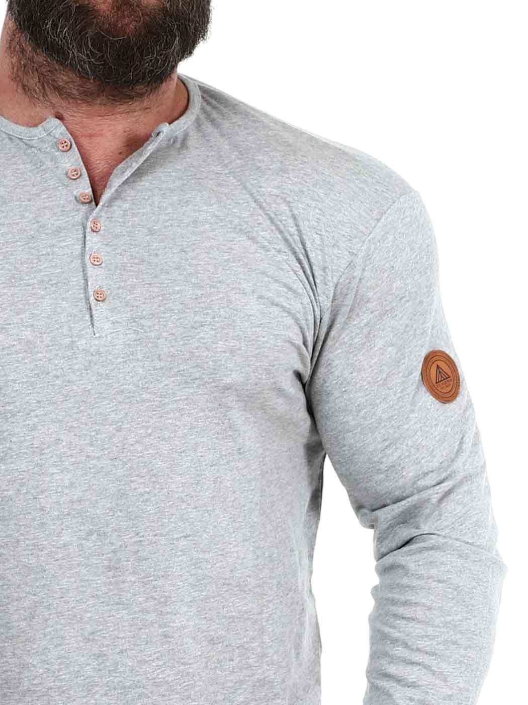 Zaprojektowany przez nas stylowy longsleeve ze 100% bawełny. Ma klasyczny krój i guziki przy dekolcie. Naszywka z imitacji skóry z logo na lewym rękawie.