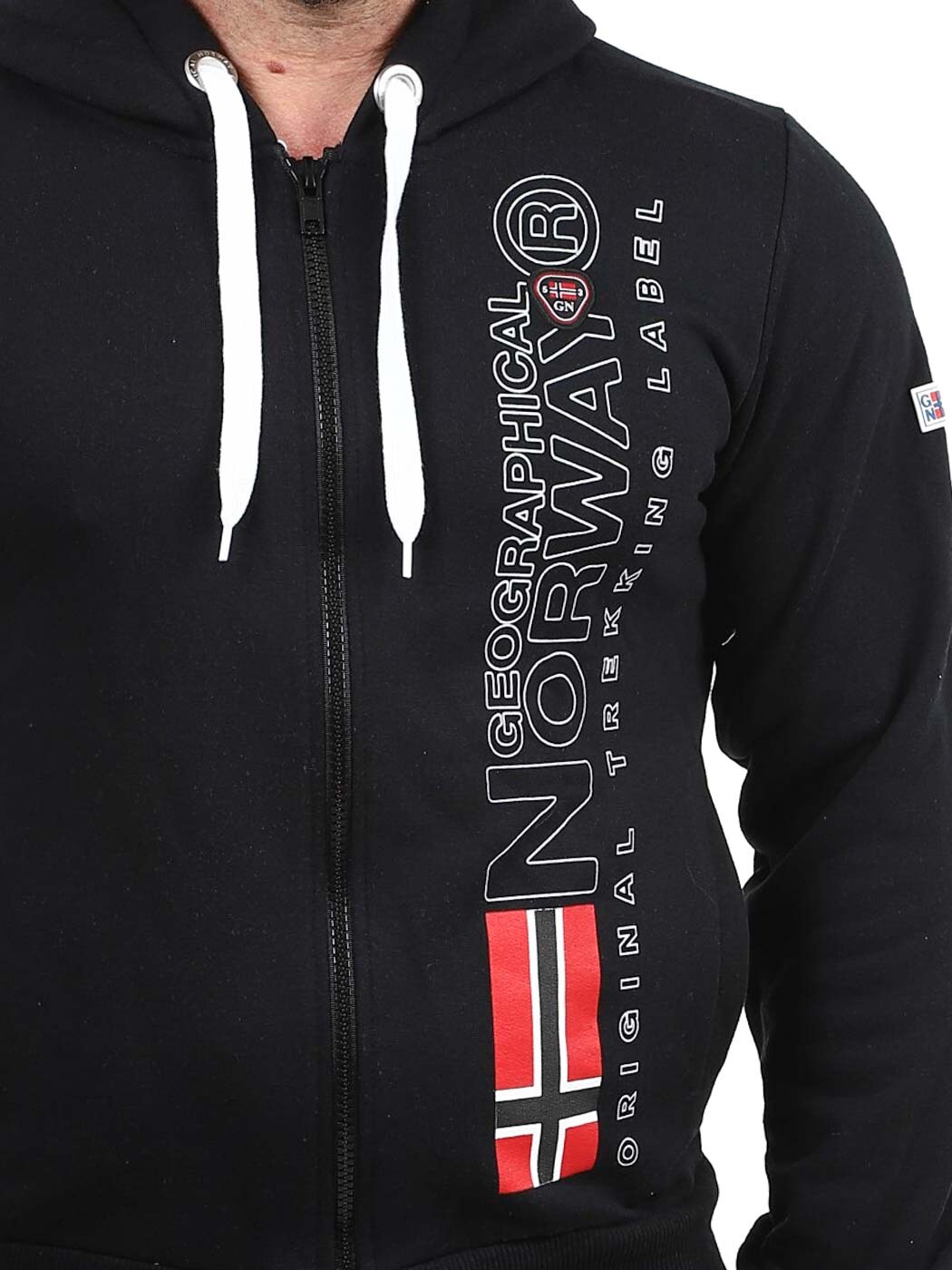 Ta bluza z kapturem i zamkiem błyskawicznym ma klasyczny krój, regulowany kaptur ze sznurkiem oraz prążkowane mankiety, które zapewniają wygodę noszenia. Ozdobiona nadrukiem flagi i logo na piersi oraz ramieniu. Posiada szczotkowaną podszewkę i dwie otwarte kieszenie na brzuchu.