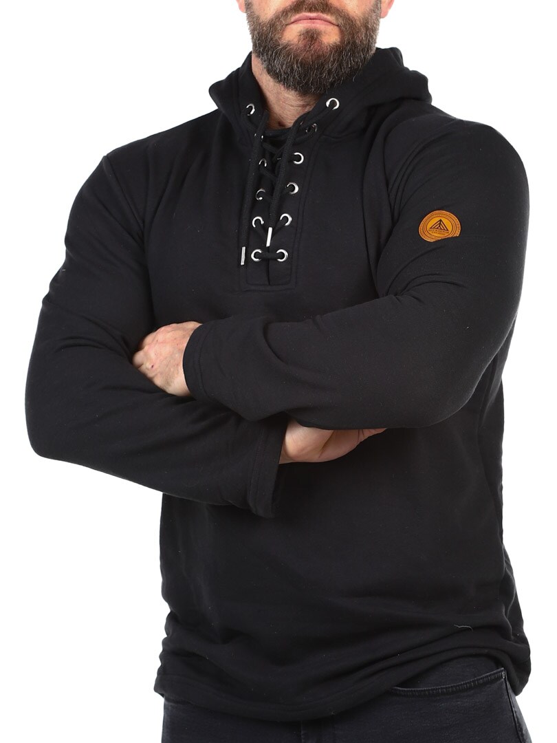 Sweter z wygodnej mieszanki zawierającej bawełnę. Model z kapturem i sznurowaniem z przodu. Ta koszula została stworzona specjalnie dla naszych klientów i jest dostępna tylko w RockDenim!
