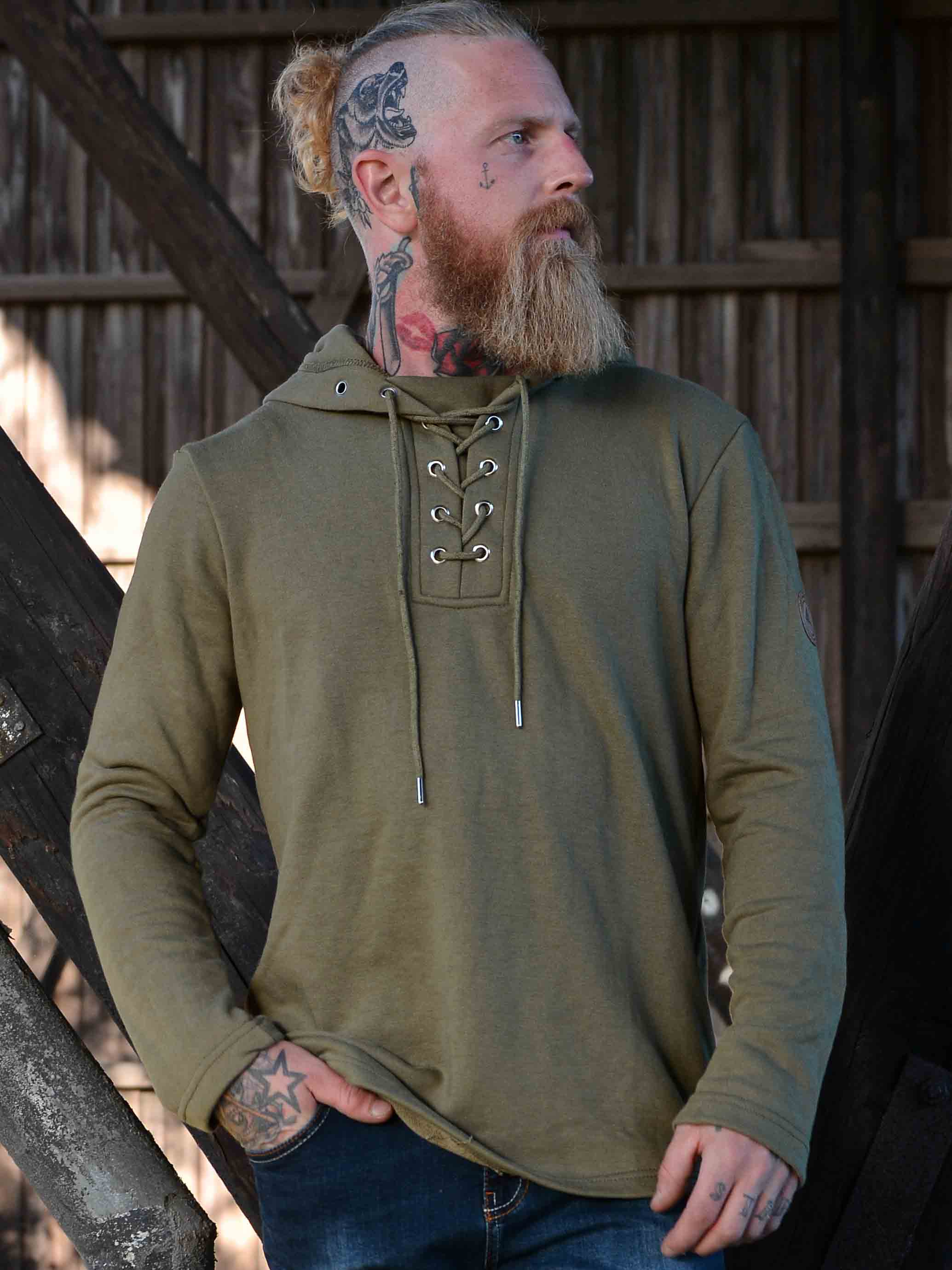 Sweter z wygodnej mieszanki zawierającej bawełnę. Model z kapturem i sznurowaniem z przodu. Ta koszula została stworzona specjalnie dla naszych klientów i jest dostępna tylko w RockDenim!
