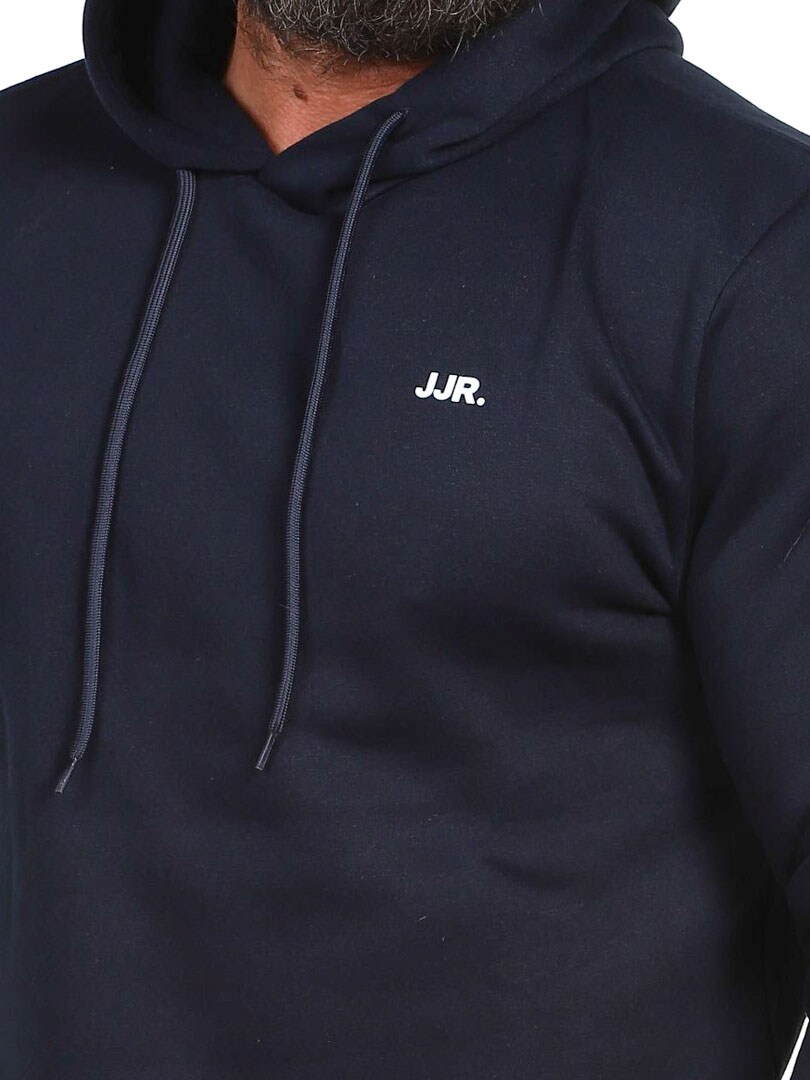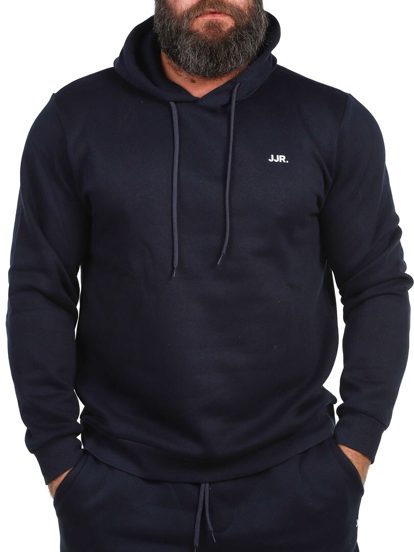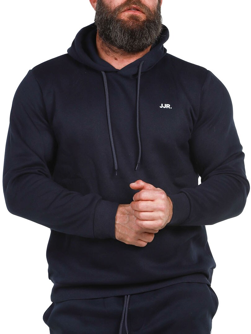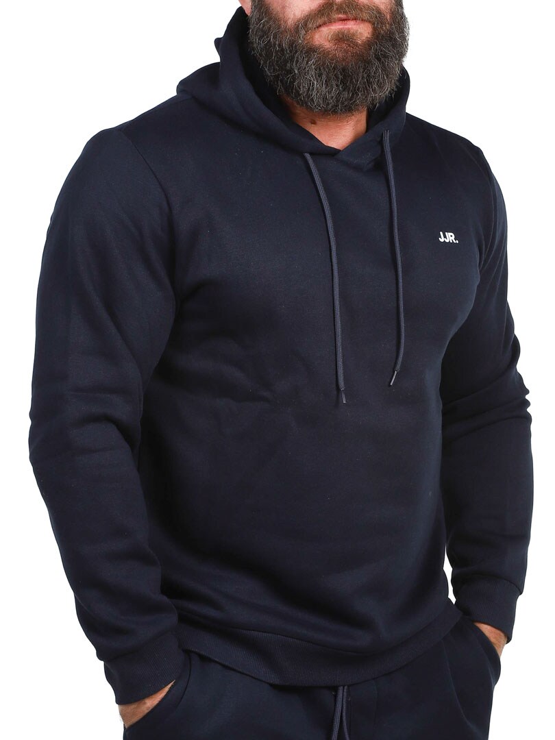 Stylowy i wygodny sweter z praktycznym kapturem, który można regulować za pomocą sznurka. Wykonana z miękkiego materiału ze szczotkowanym wykończeniem od wewnątrz dla optymalnego komfortu i ciepła. Dyskretne logo JJR na piersi dodaje nowoczesnego charakteru. Żadna garderoba nie jest kompletna bez niezawodnych podstaw!