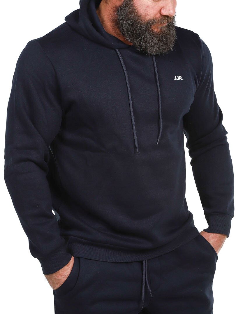 Stylowy i wygodny sweter z praktycznym kapturem, który można regulować za pomocą sznurka. Wykonana z miękkiego materiału ze szczotkowanym wykończeniem od wewnątrz dla optymalnego komfortu i ciepła. Dyskretne logo JJR na piersi dodaje nowoczesnego charakteru. Żadna garderoba nie jest kompletna bez niezawodnych podstaw!