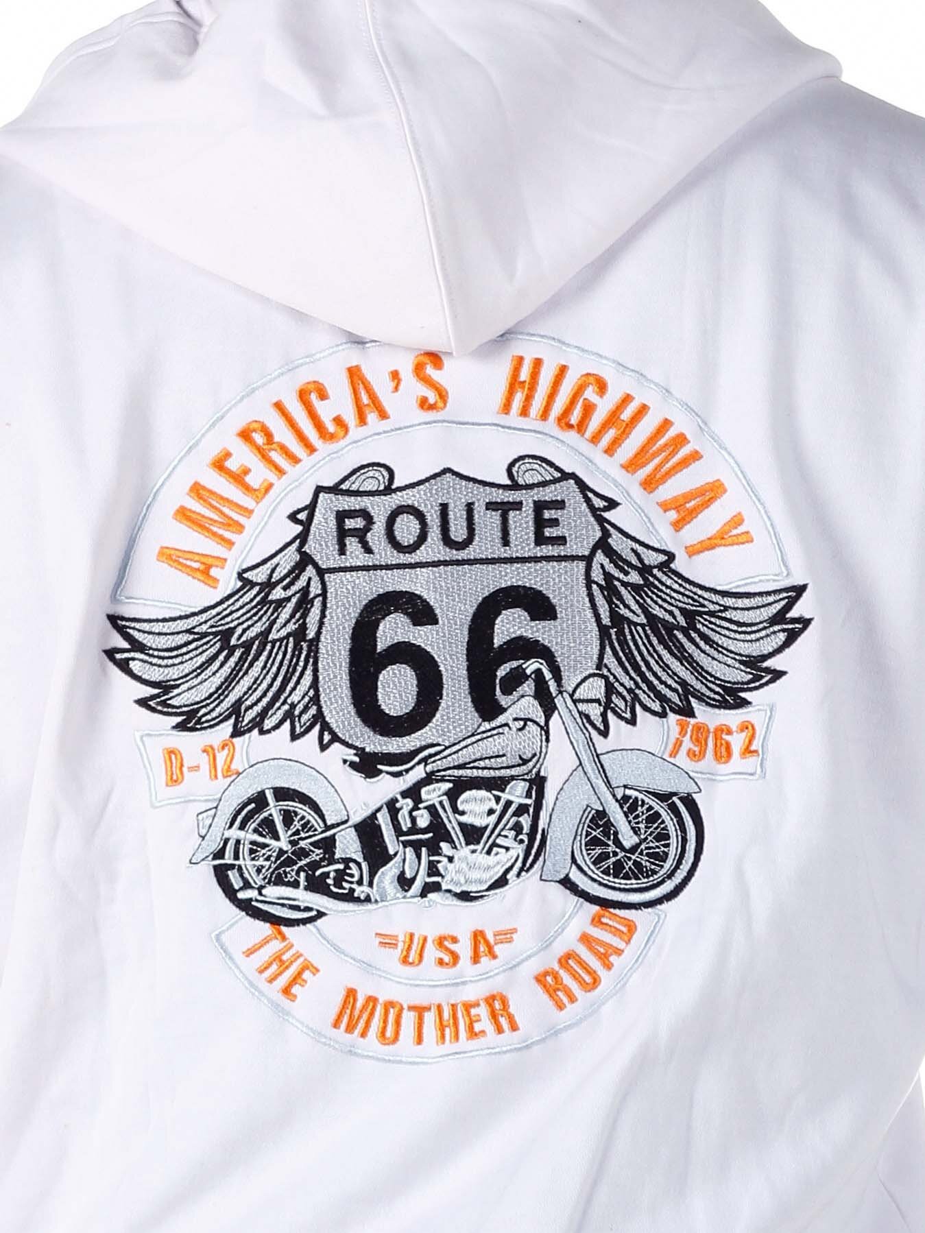 Bluza zapinana na zamek, z kieszeniami na brzuchu. Przestronny i wygodny model, zdobiony grafiką inspirowaną motocyklami. Szerokie ściągacze u dołu i przy rękawach.