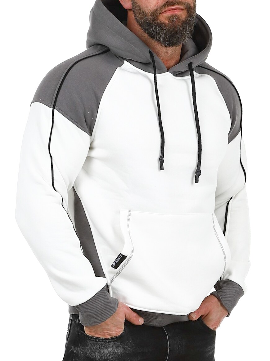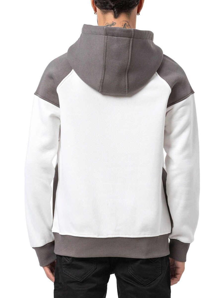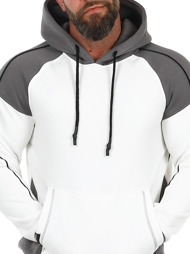 Ulepsz swój codzienny styl dzięki tej sportowej i wygodnej bluzie z kapturem. Model ma dwukolorowy design, który nadaje mu dynamiczny i nowoczesny charakter. Bluza posiada dużą kieszeń z przodu, regulowane sznurki w kapturze oraz ściągacze przy mankietach i u dołu.