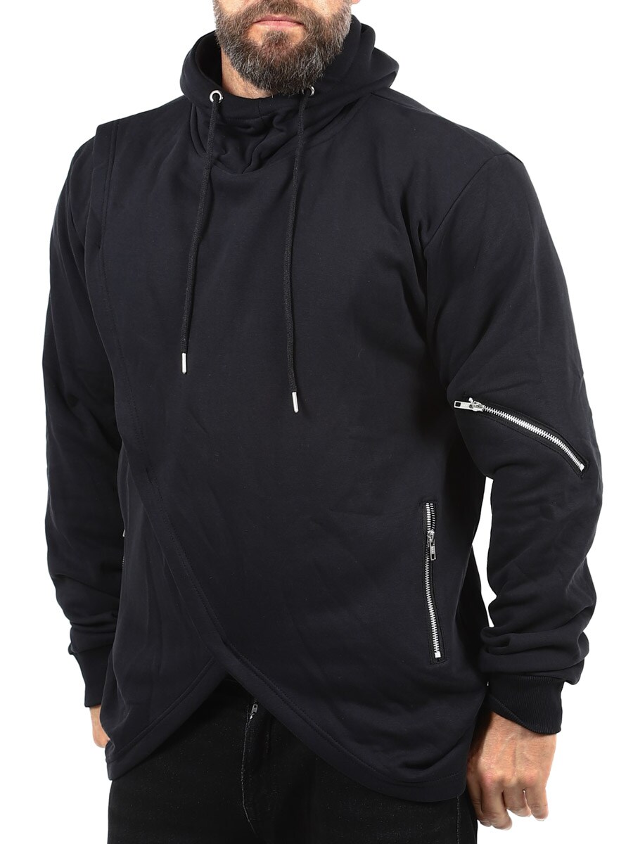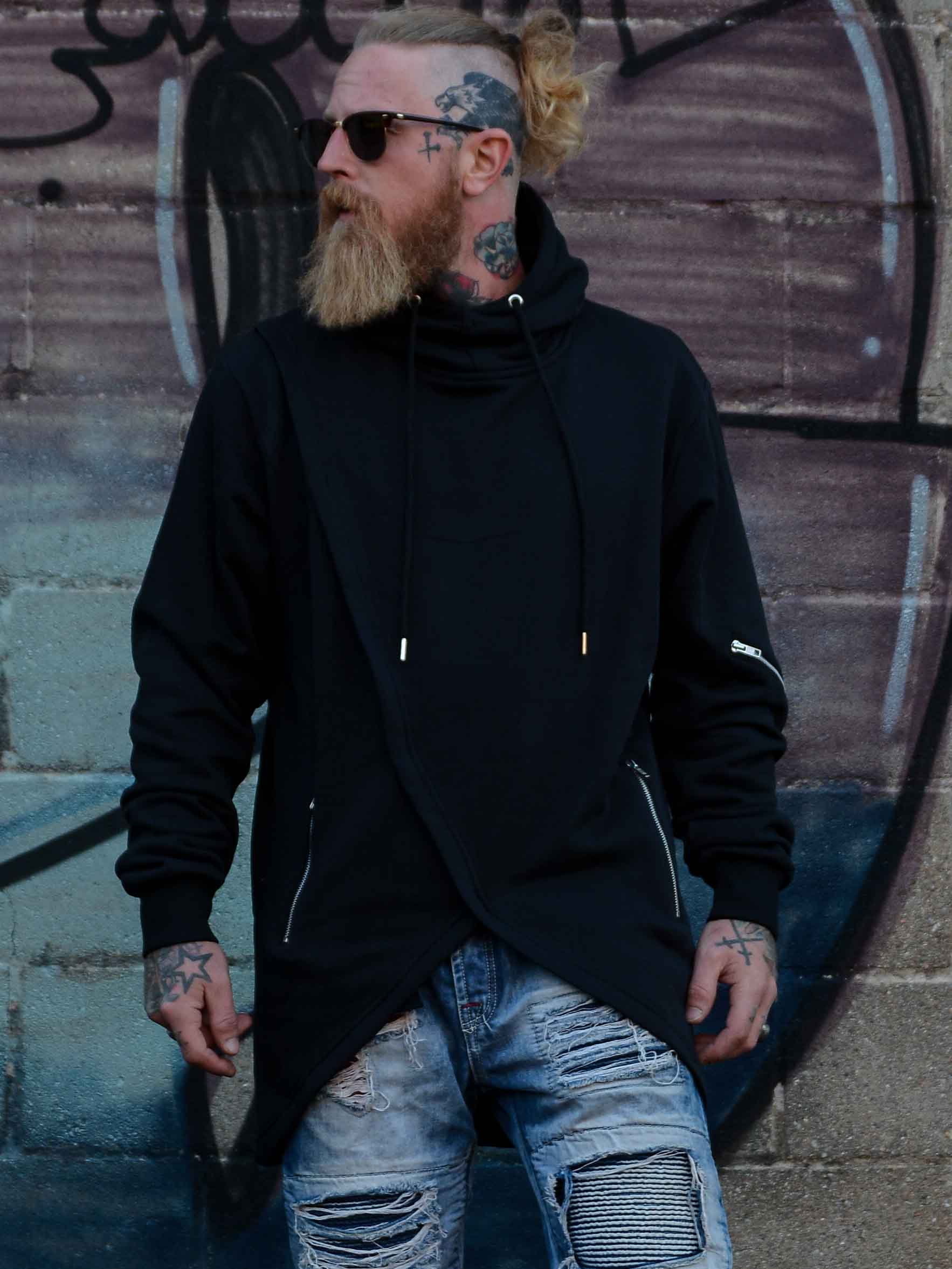 Bluza z kapturem w dłuższym fasonie z wycięciem u dołu. Wyposażona w ozdobne zamki błyskawiczne na rękawach, kaptur ze sznurkiem i prążkowane mankiety. Posiada dwie zapinane kieszenie z przodu i szczotkowaną podszewkę. Tę bluzę można znaleźć wyłącznie w Rockdenim!
