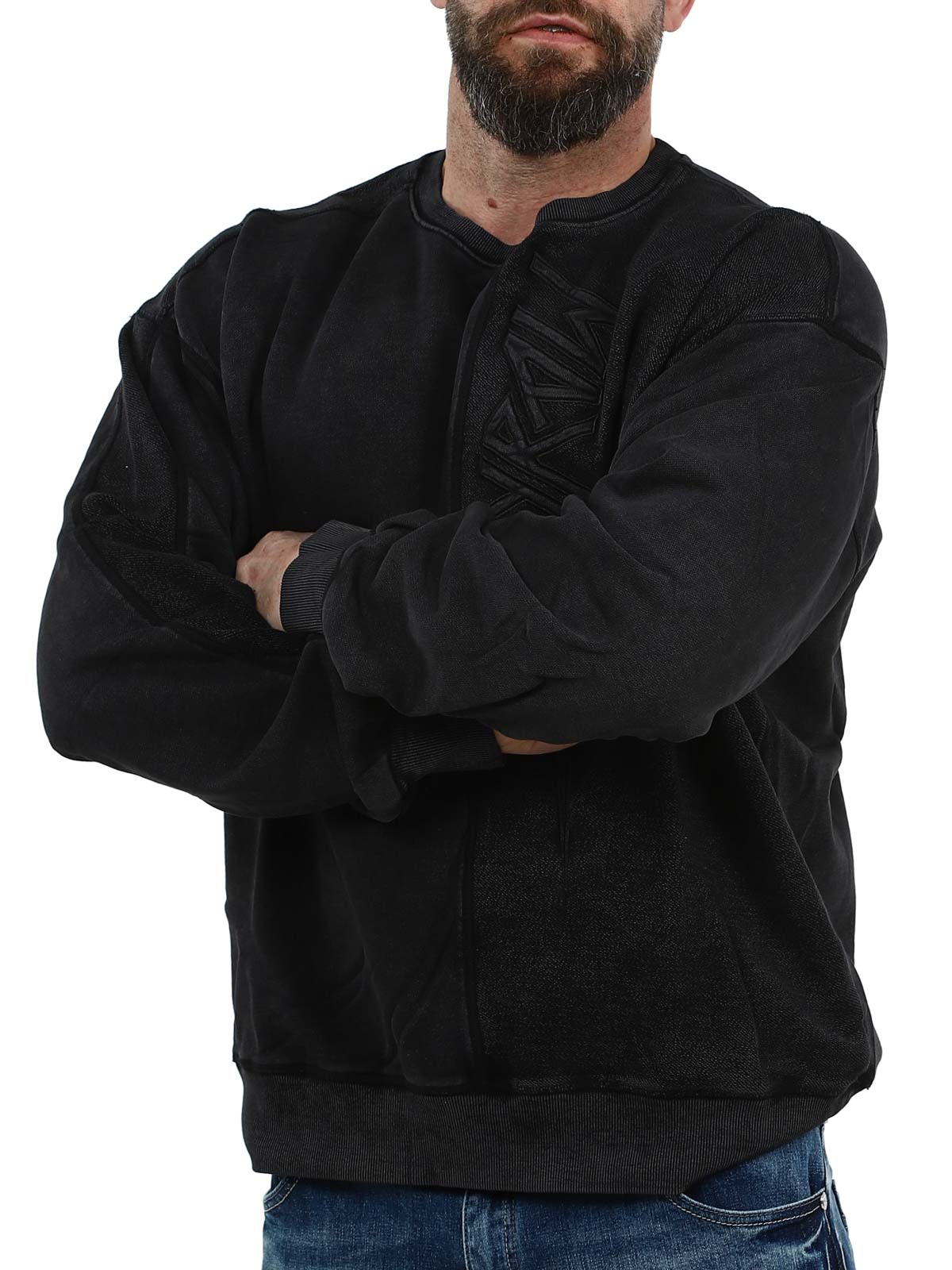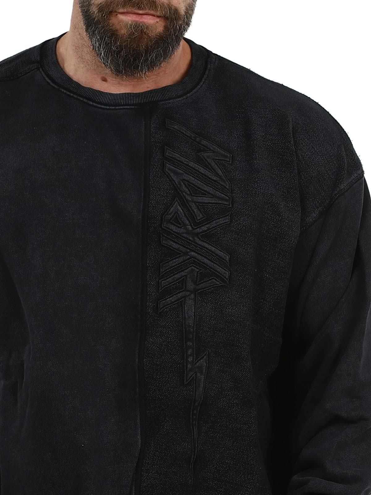 Czarna bluza z efektem sprania, zaprojektowana z logo Hyraw z przodu oraz dużym motywem czaszki na plecach. Model ma krój oversized, który nadaje jej swobodny i nowoczesny wygląd – idealny dla osób, które cenią zarówno styl, jak i swobodę ruchów. Bluza posiada również ściągacze przy mankietach i na dole dla wygodnego dopasowania.