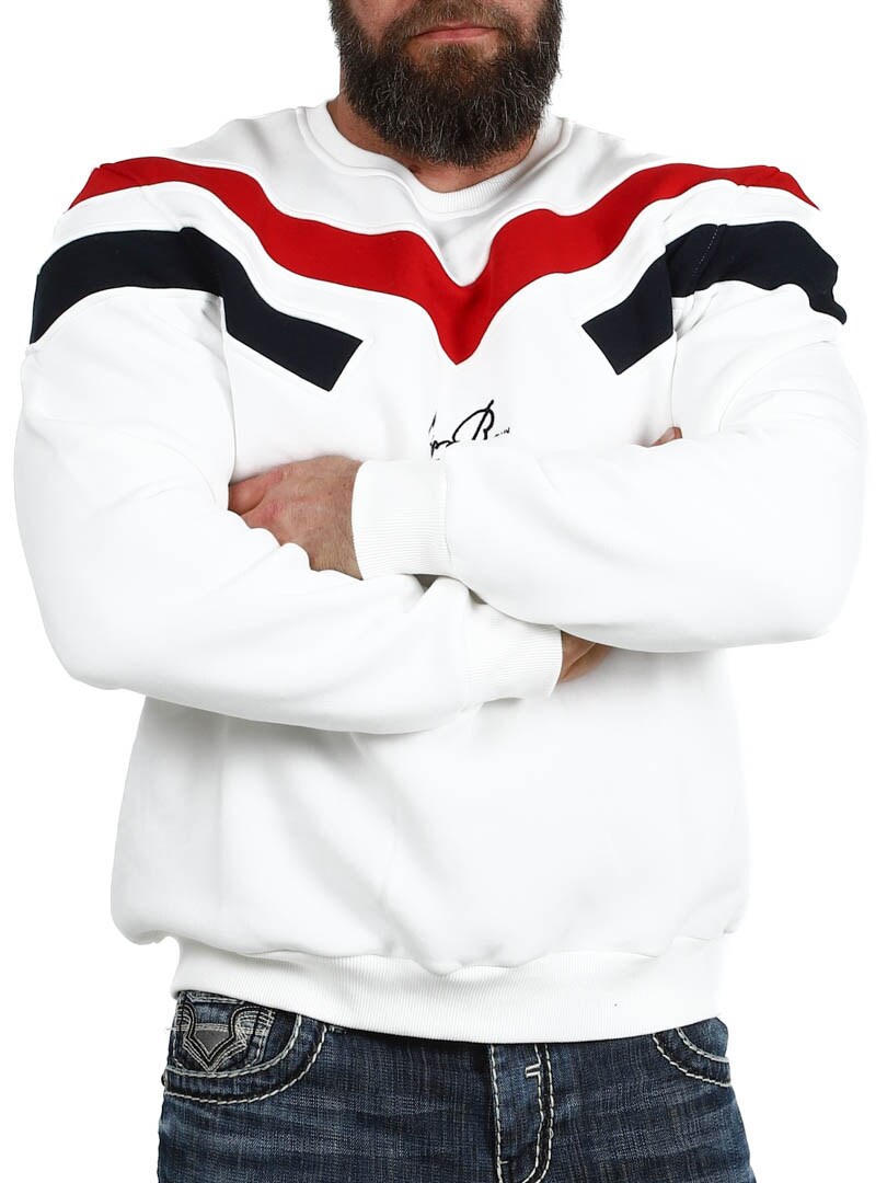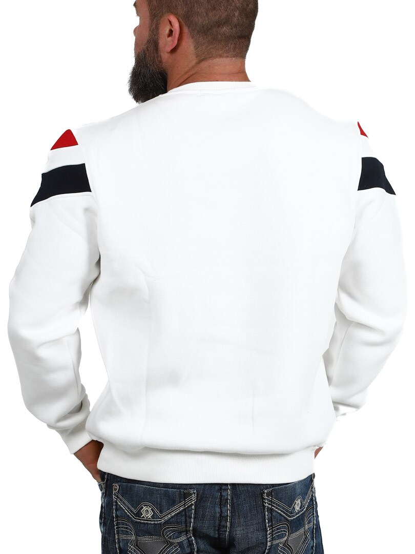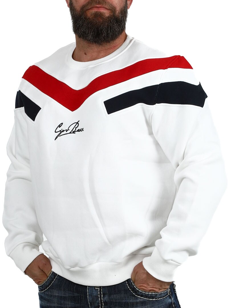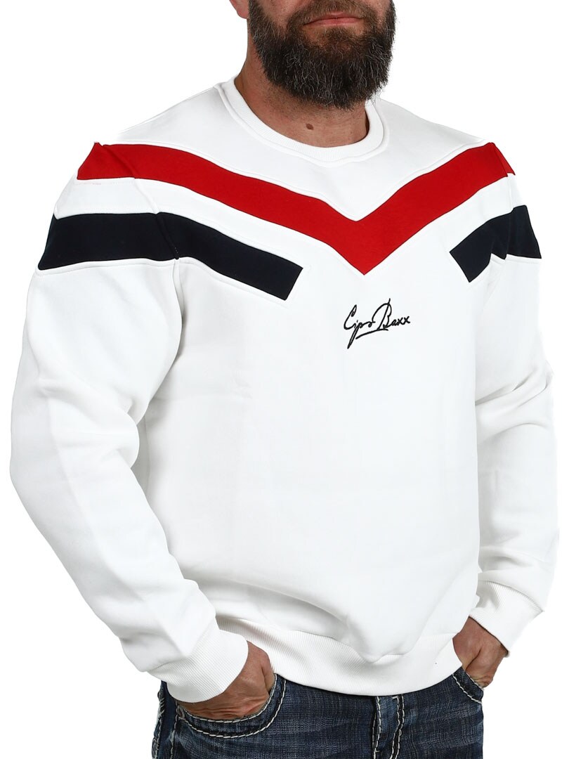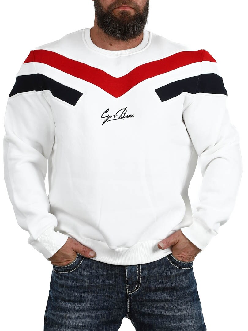 Bluza z logo na piersi i paskami w kontrastowym kolorze. Ma zaokrąglony dekolt, prążkowany dół i szczotkowane wnętrze.