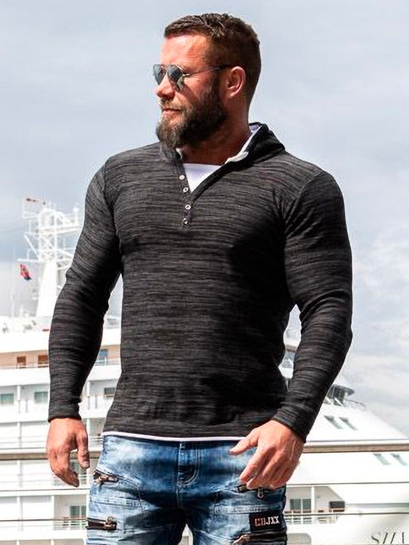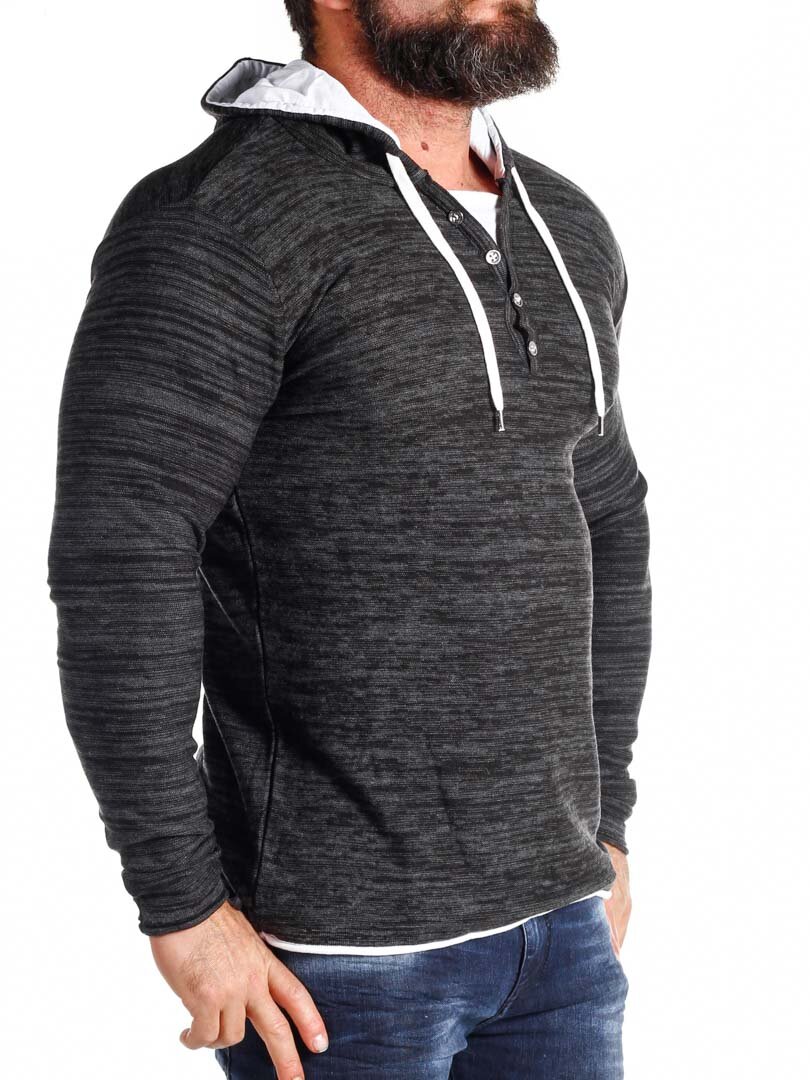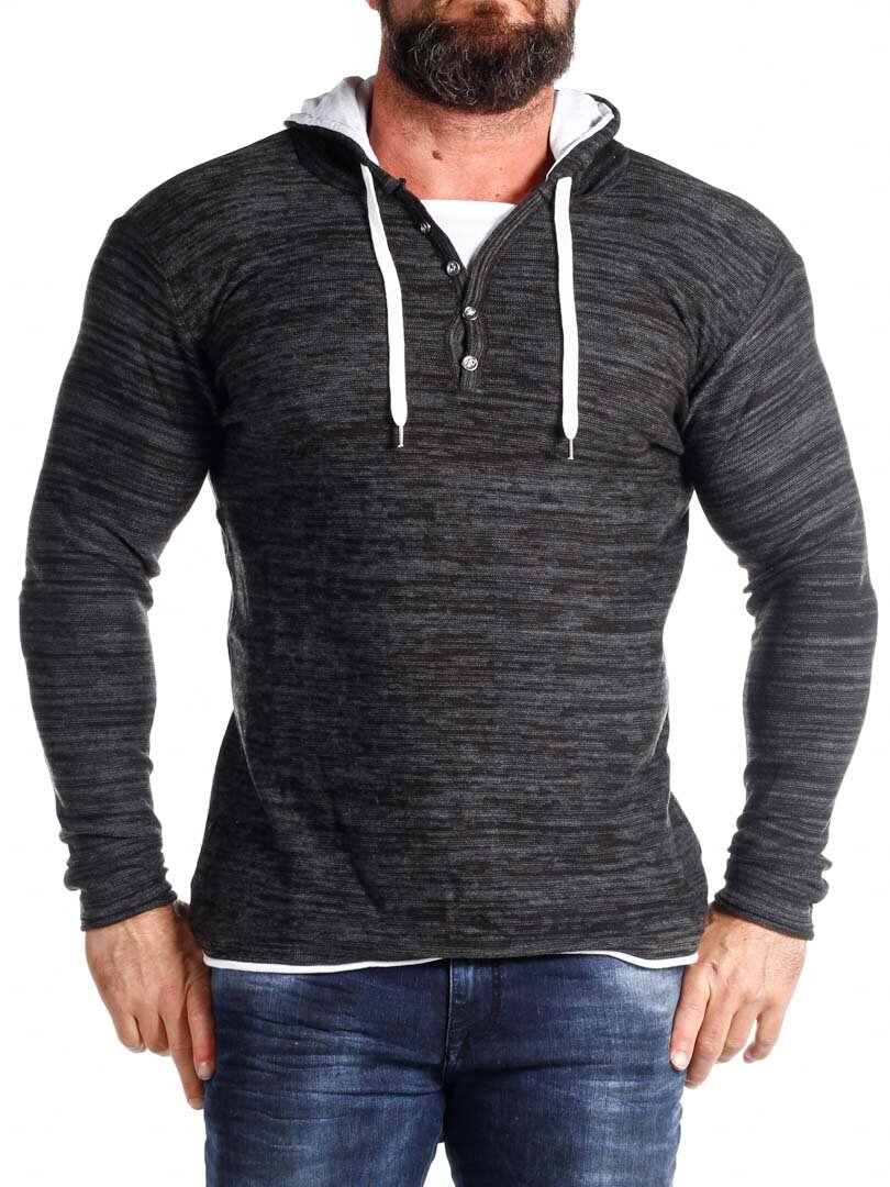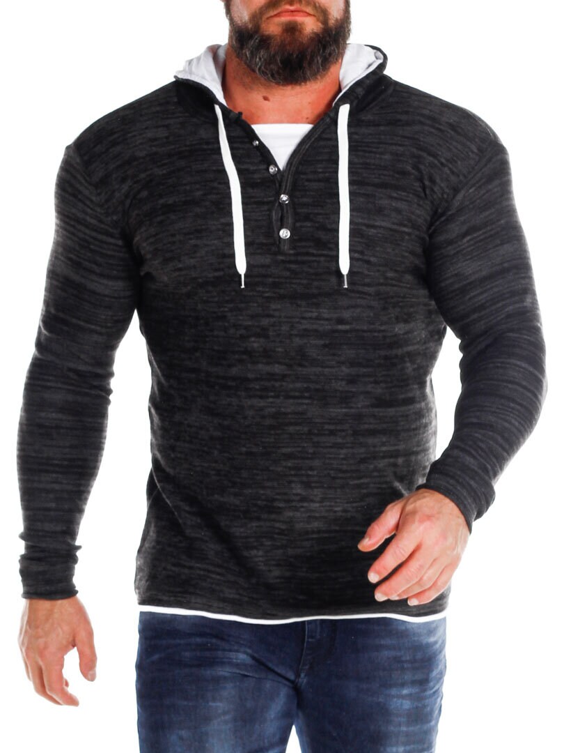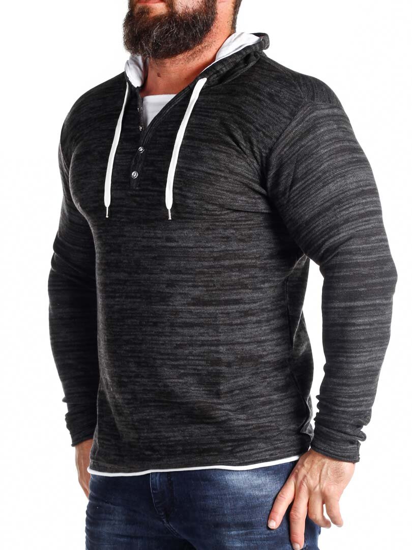 Czarno-szara bluza z białymi detalami. Posiada guziki przy dekolcie oraz sznurek w kapturze. Wykonana z cienkiego i przyjemnego materiału.