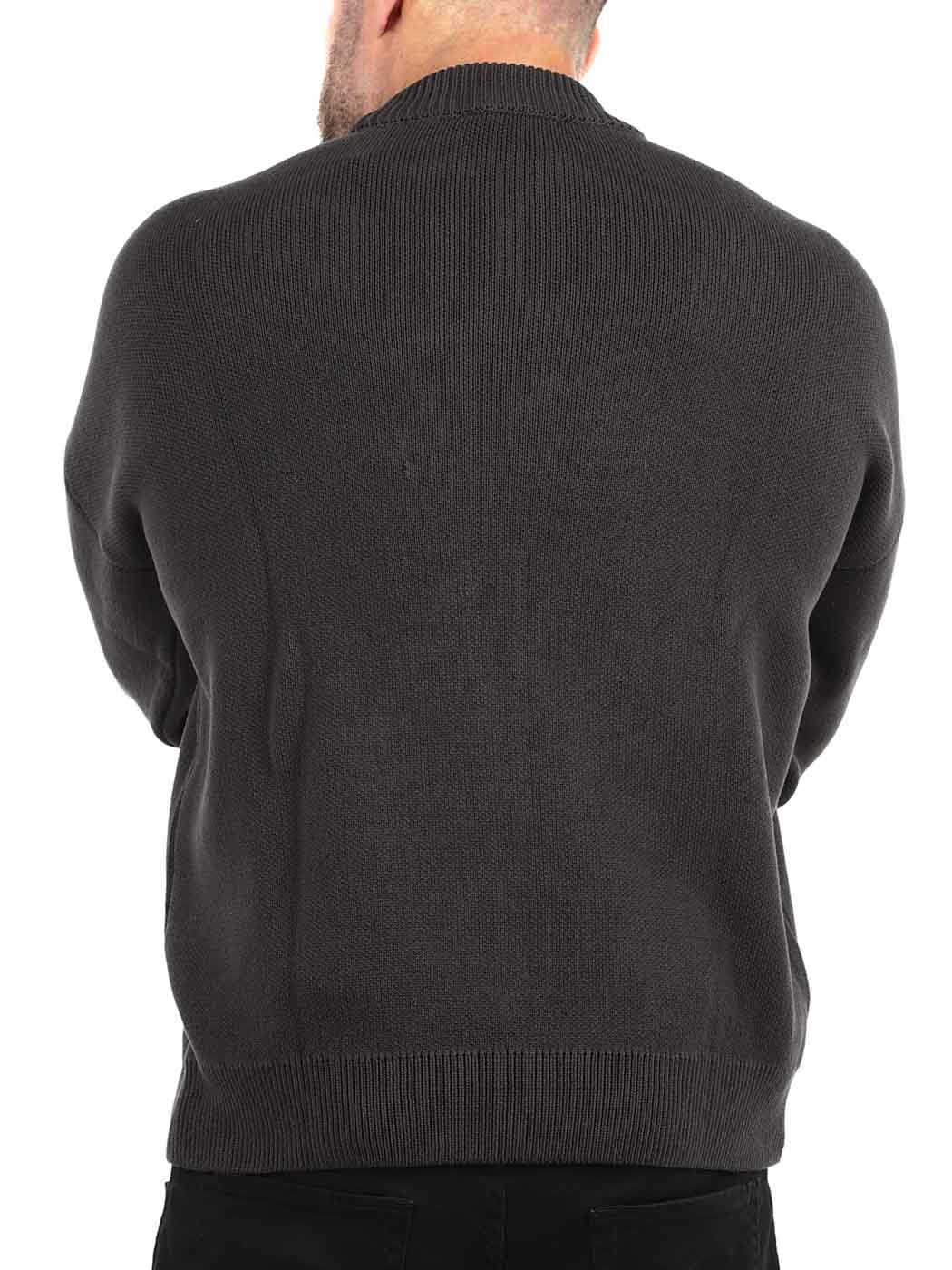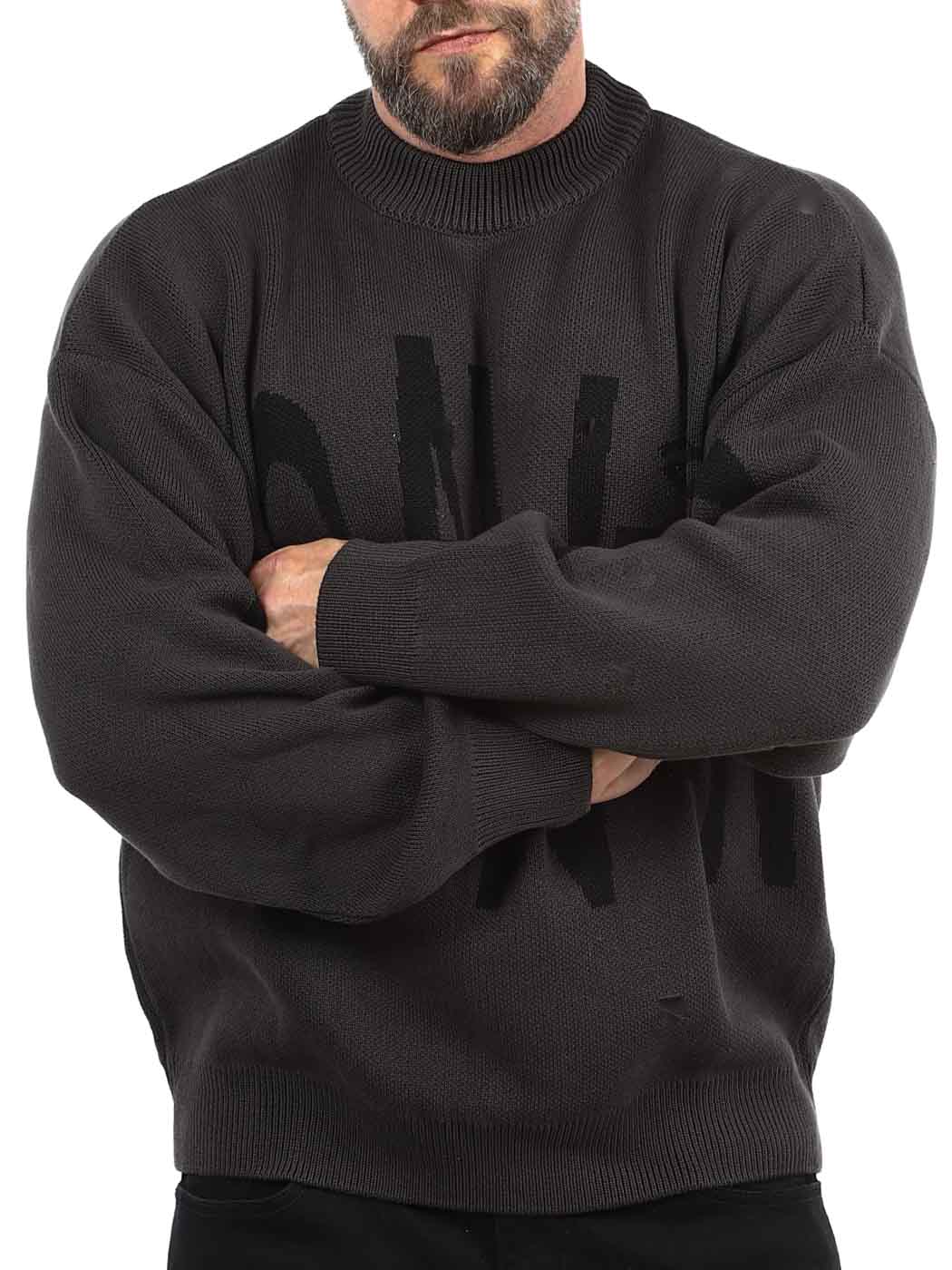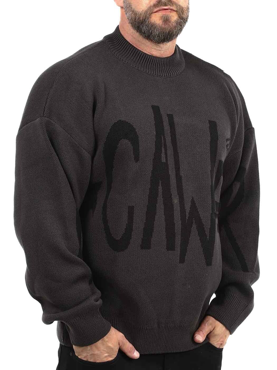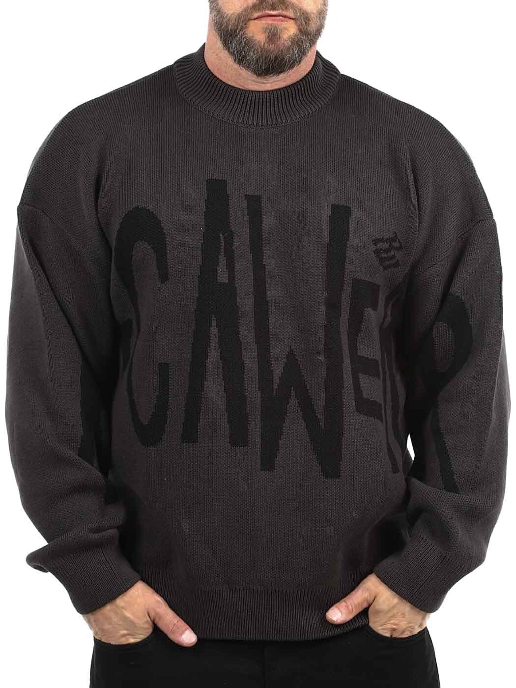Tjockt stickad i en robust grå nyans som känns lika stabil som den ser ut. Designad med en svart rejäl logga på framsidan och ribbade avslut. Perfekt för kyliga dagar, eller när du bara vill ha något som känns gediget.