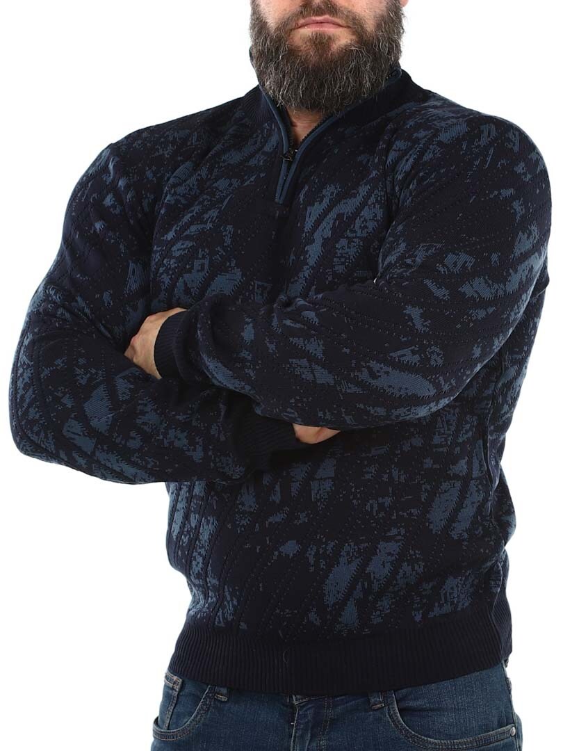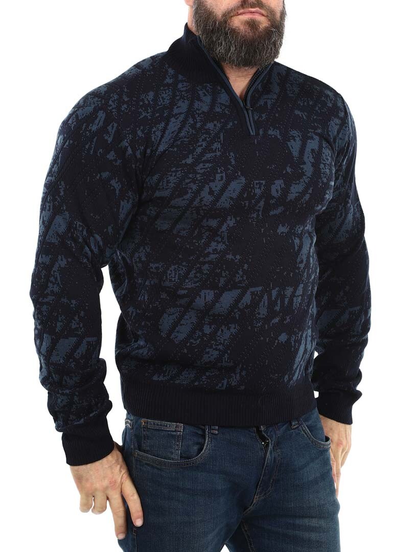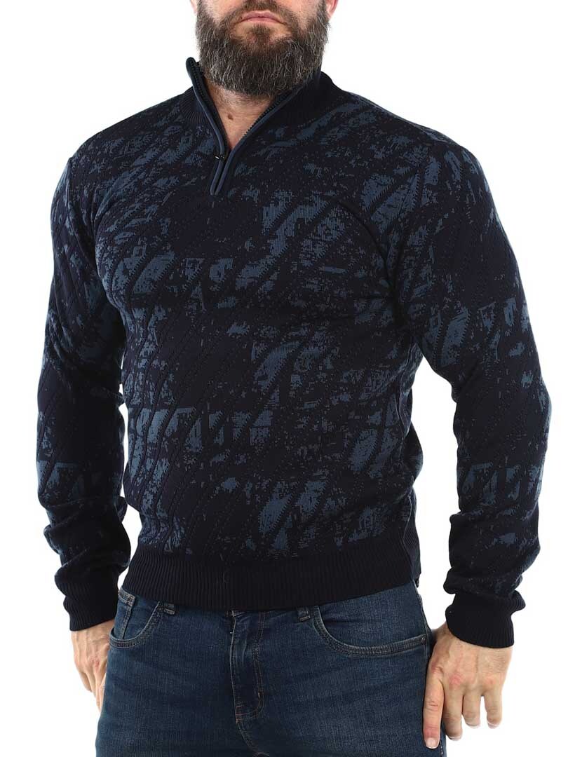 Wzorzysty sweter z wysokim kołnierzem i zamkiem. Elastyczny model ze ściągaczami przy rękawach i na dole. Stylowy sweter, który ogrzeje Cię w chłodne dni!