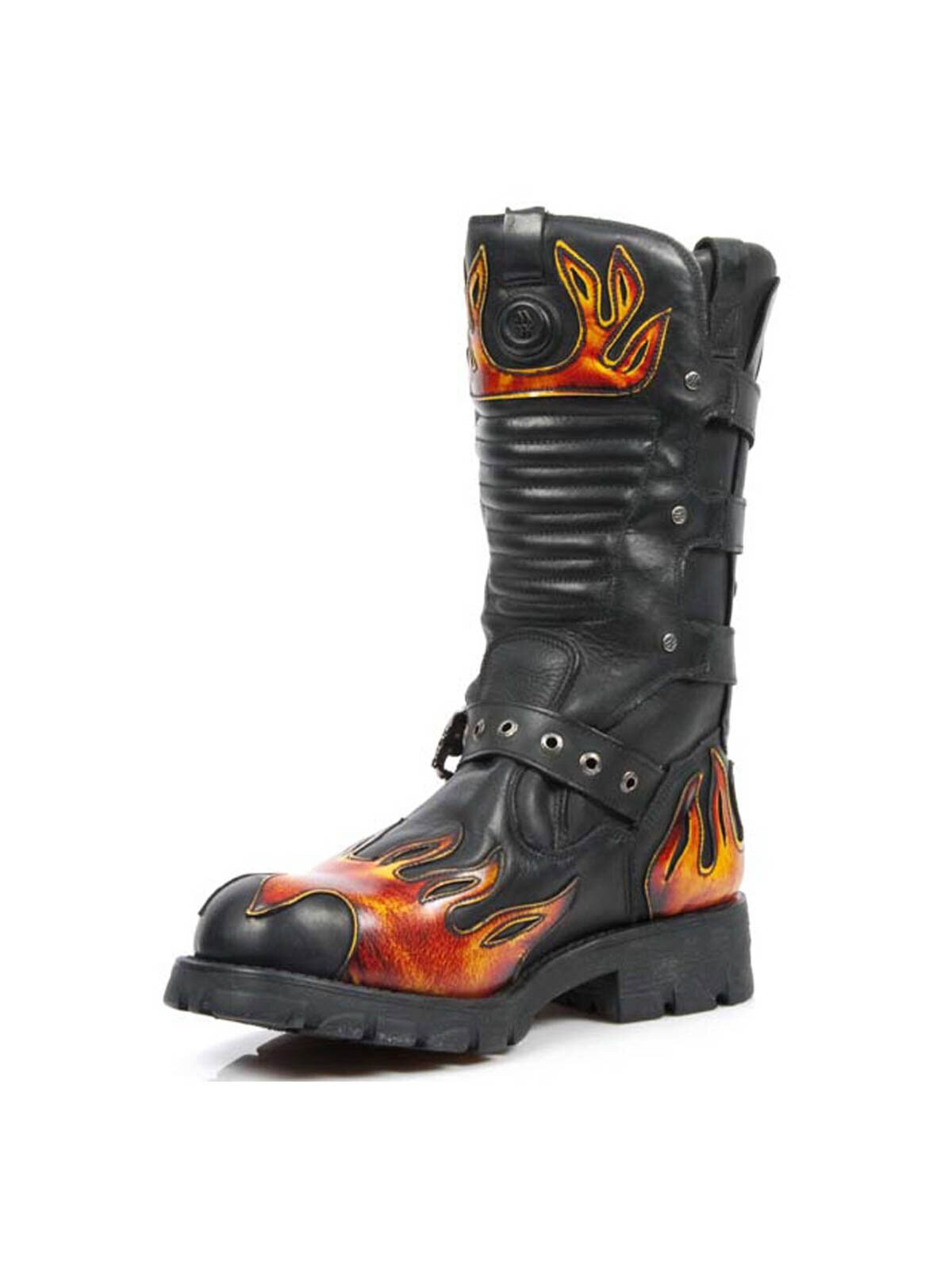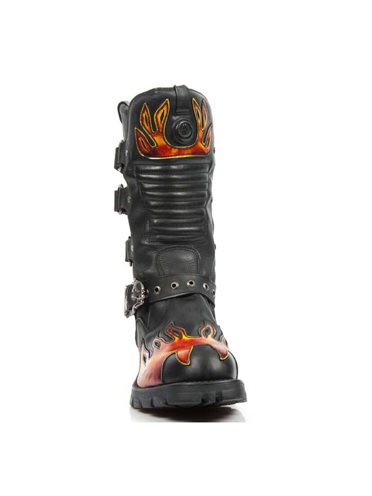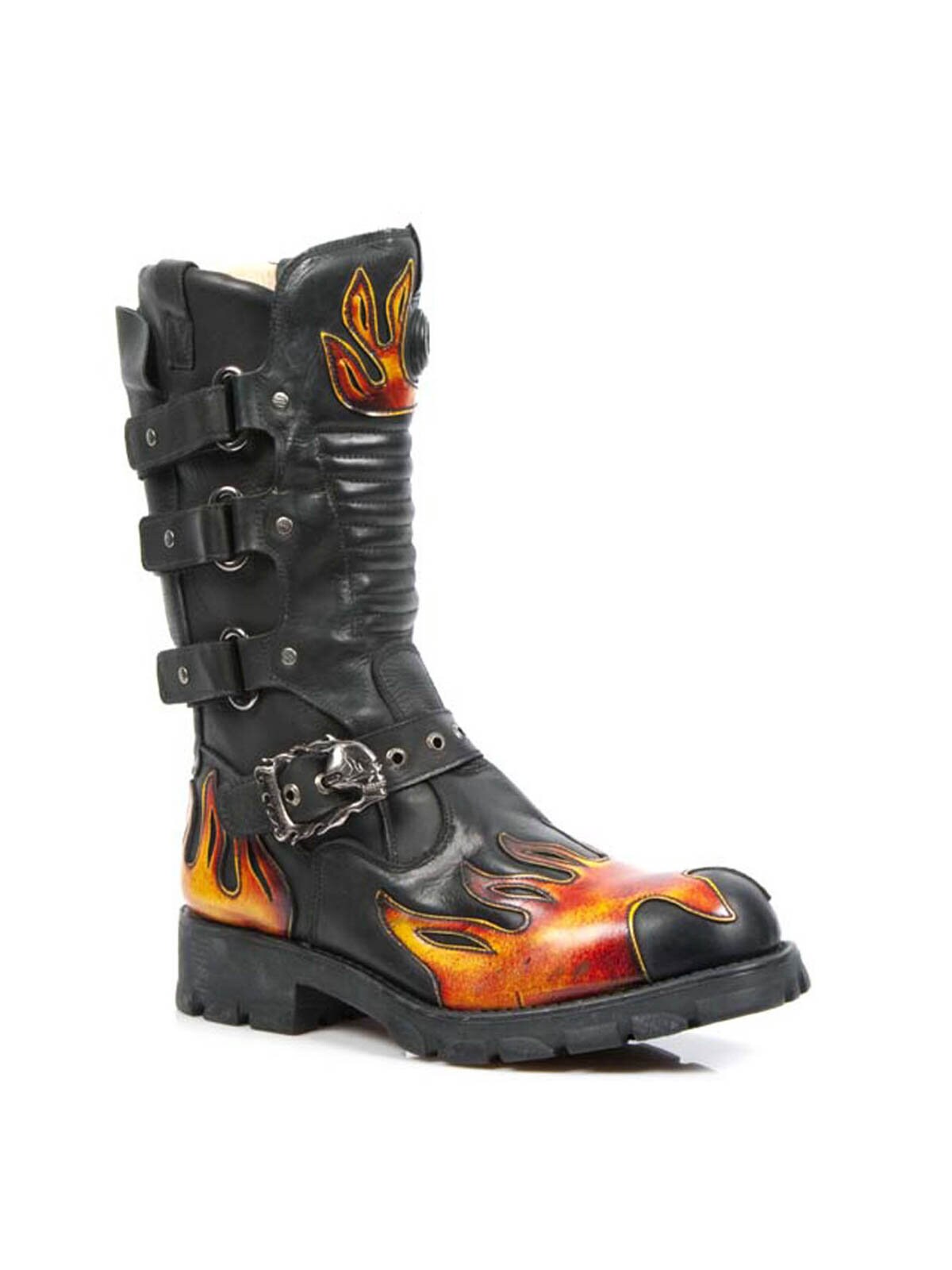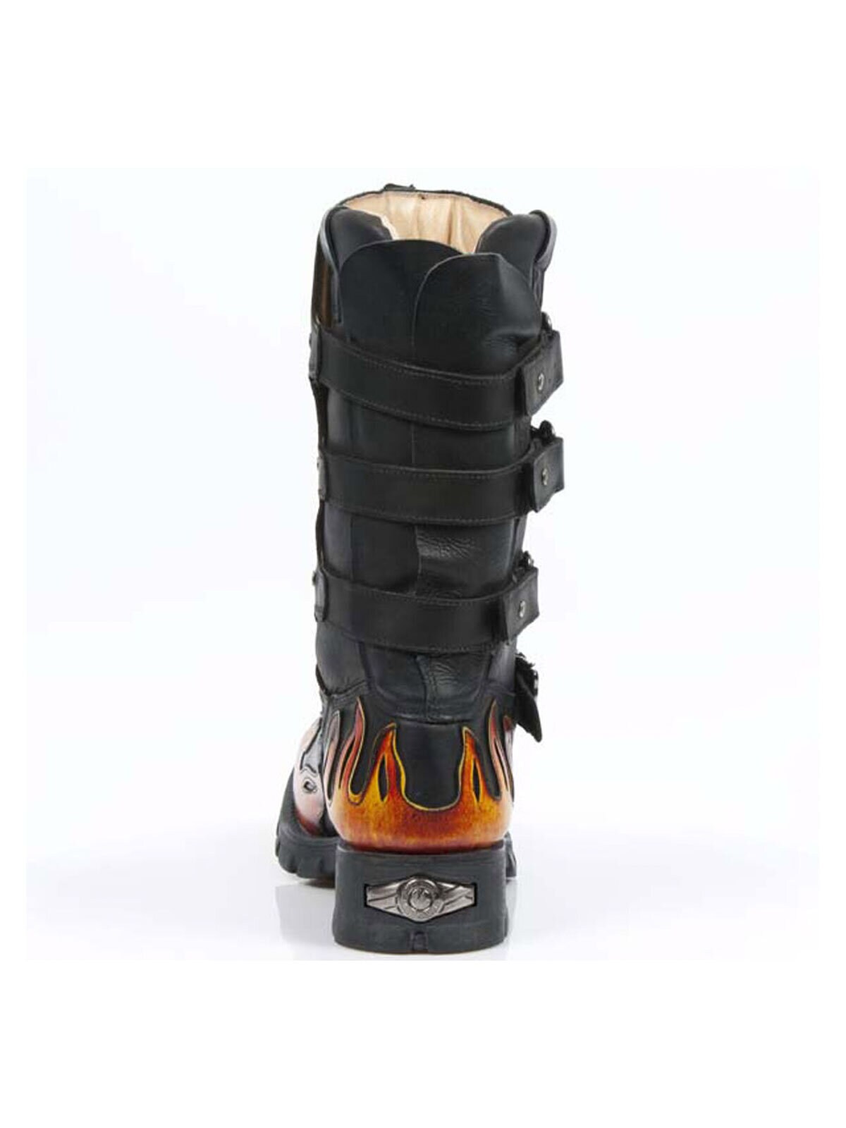 Wysokie buty ze skóry o mocno rockowym designie, z płomieniami i stylowymi detalami. Posiadają regulowane paski na rzepy, z metalowymi klamrami. Te wyjątkowe buty dostępne są w limitowanej edycji!