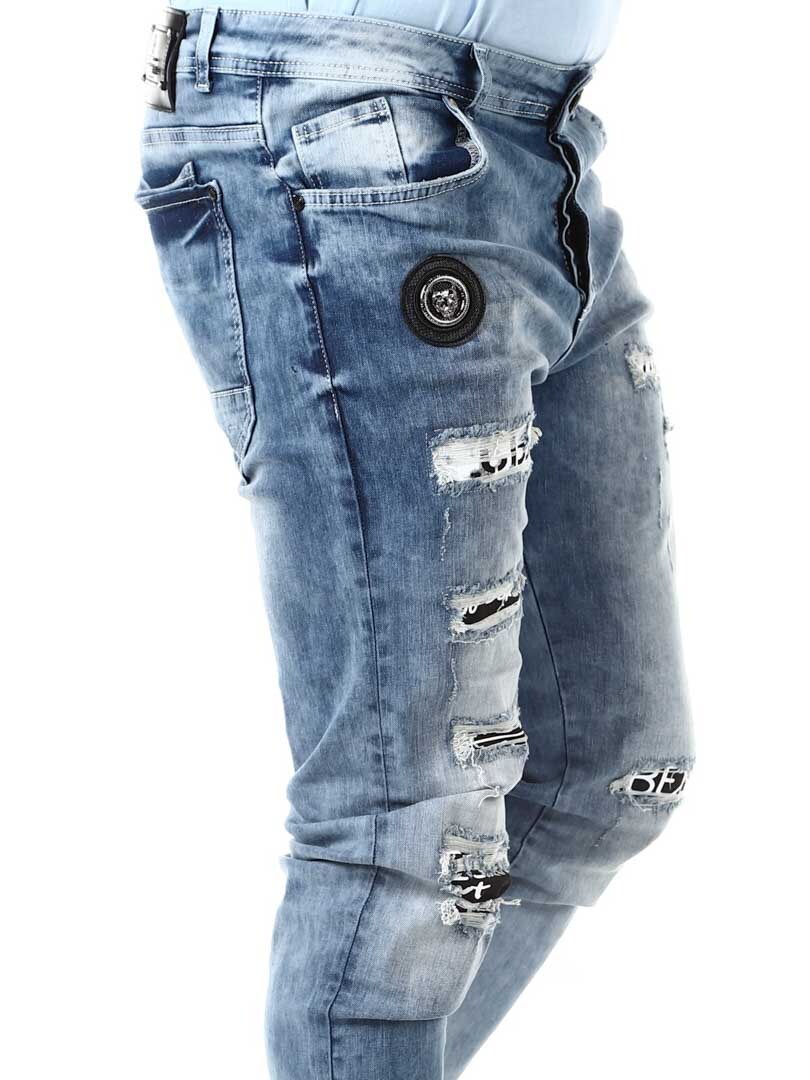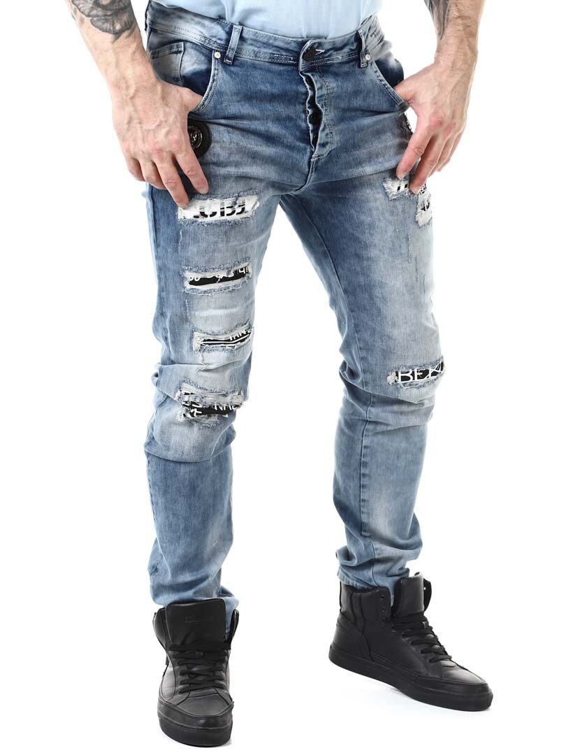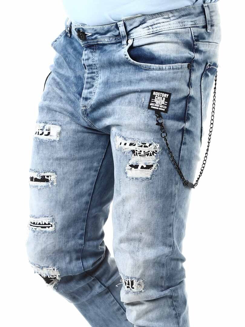 Modne powycierane jeansy Rostory z odpinanym łańcuchem i przestronnymi kieszeniami. Model z przeszyciami, pęknięciami i kontrastowym materiałem, który nadaje im niespotykanego charakteru. Zamek zamykany na guziki oraz efektowne ozdoby na przednich kieszeniach dopełniają ich design. Te jeansy z pewnością przykują uwagę!