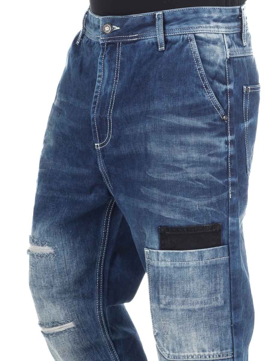 Odśwież swój codzienny styl dzięki tym nowoczesnym, swobodnym jeansom w stylu streetwear. Mają pięć klasycznych kieszeni oraz dwie dodatkowe z przodu, które nadają im wyjątkowy charakter. Jeansy poddane efektowi stonewash ze stylowymi przetarciami – idealne dla osób, które szukają wyrazistych spodni wyróżniających się wyglądem, a jednocześnie wygodnych na co dzień.
