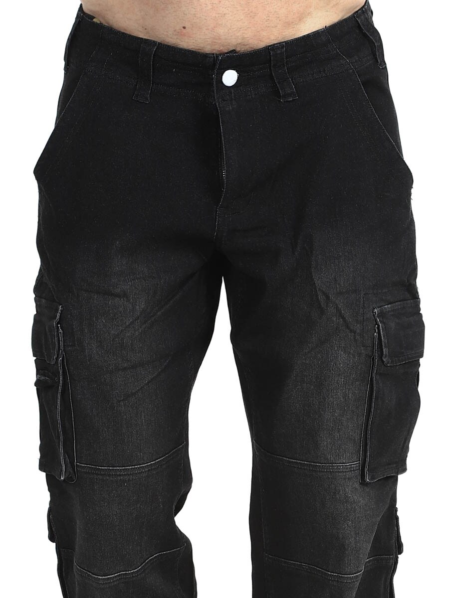 Wytrzymałe jeansy cargo z denimu o swobodnym i funkcjonalnym kroju. Spodnie oferują dużo miejsca do przechowywania dzięki licznym praktycznym kieszeniom, w tym kieszeniom tylnym oraz pojemnym kieszeniom na nogawkach. Komfortowy fason uzupełniają regulowane ściągacze u dołu nogawek, które pozwalają dopasować styl do potrzeb. Solidny wybór na co dzień i do streetwearu.